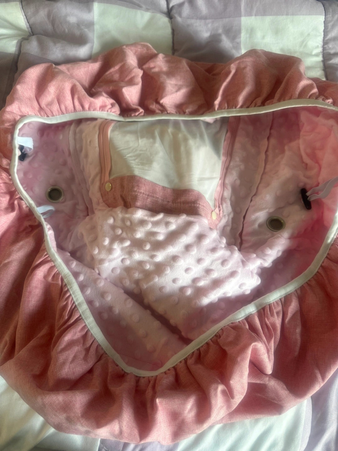 Keep your little one snug with this YVMVDV pink car seat cover! It's designed to be waterproof and windproof, perfect for those chilly Canadian days. Keeps babies warm and cozy!