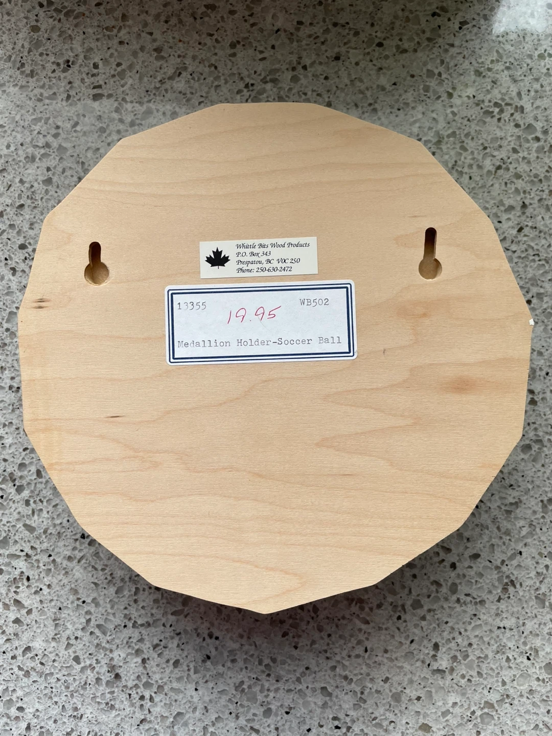 Display your soccer achievements with this wooden medallion holder. It's shaped like a soccer ball and features multiple pegs for hanging medals. The holder measures approximately 12 inches in diameter. This piece would be great for any young athlete to showcase their hard-earned awards!