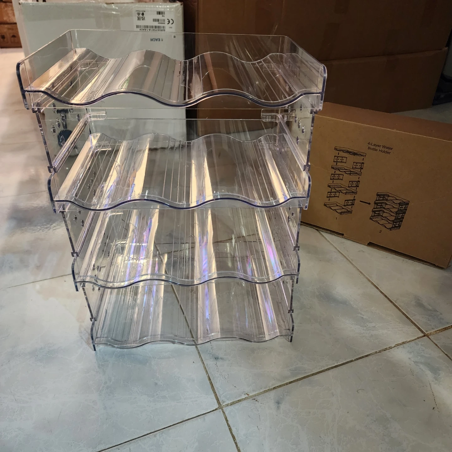 Clear Plastic Stackable Wine/water bottle Rack - Four Layers