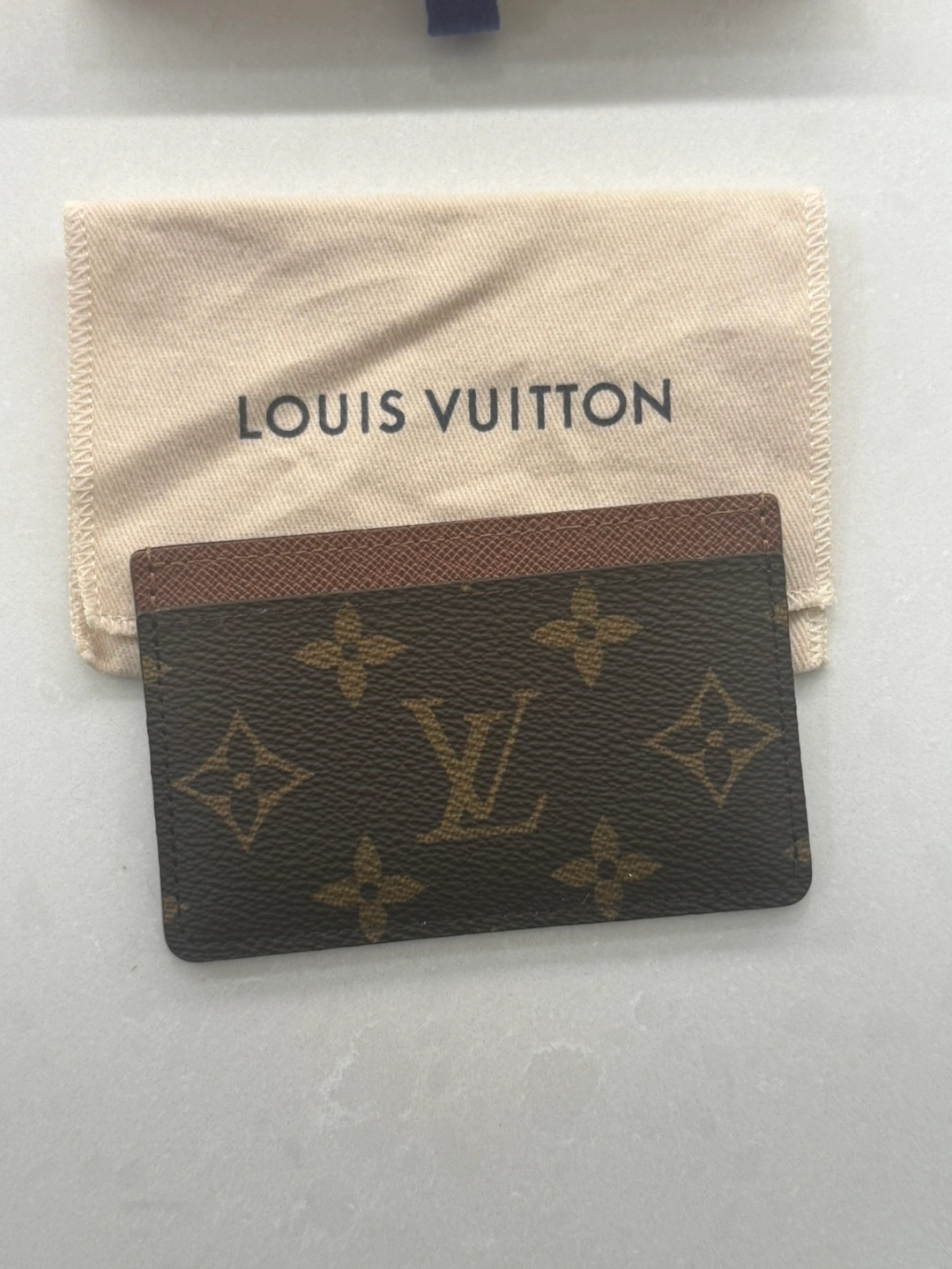 This is a Louis Vuitton card holder in the classic monogram canvas. It comes with its original box and dust bag. This holder is great for keeping your essential cards organized.