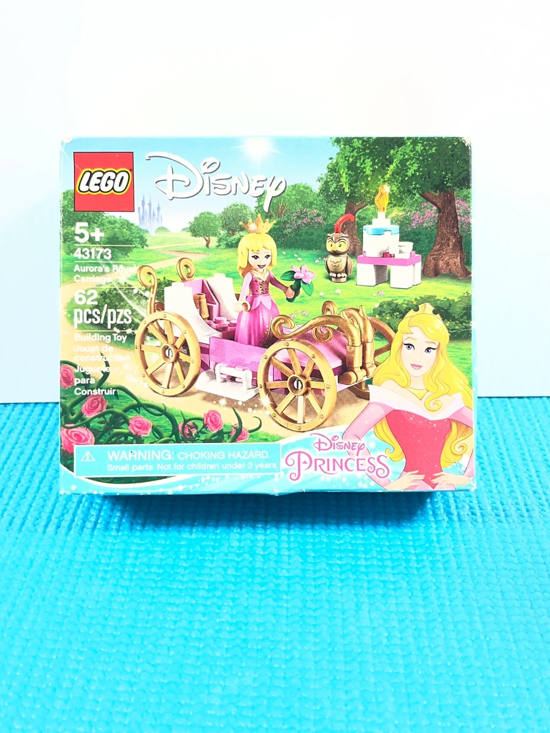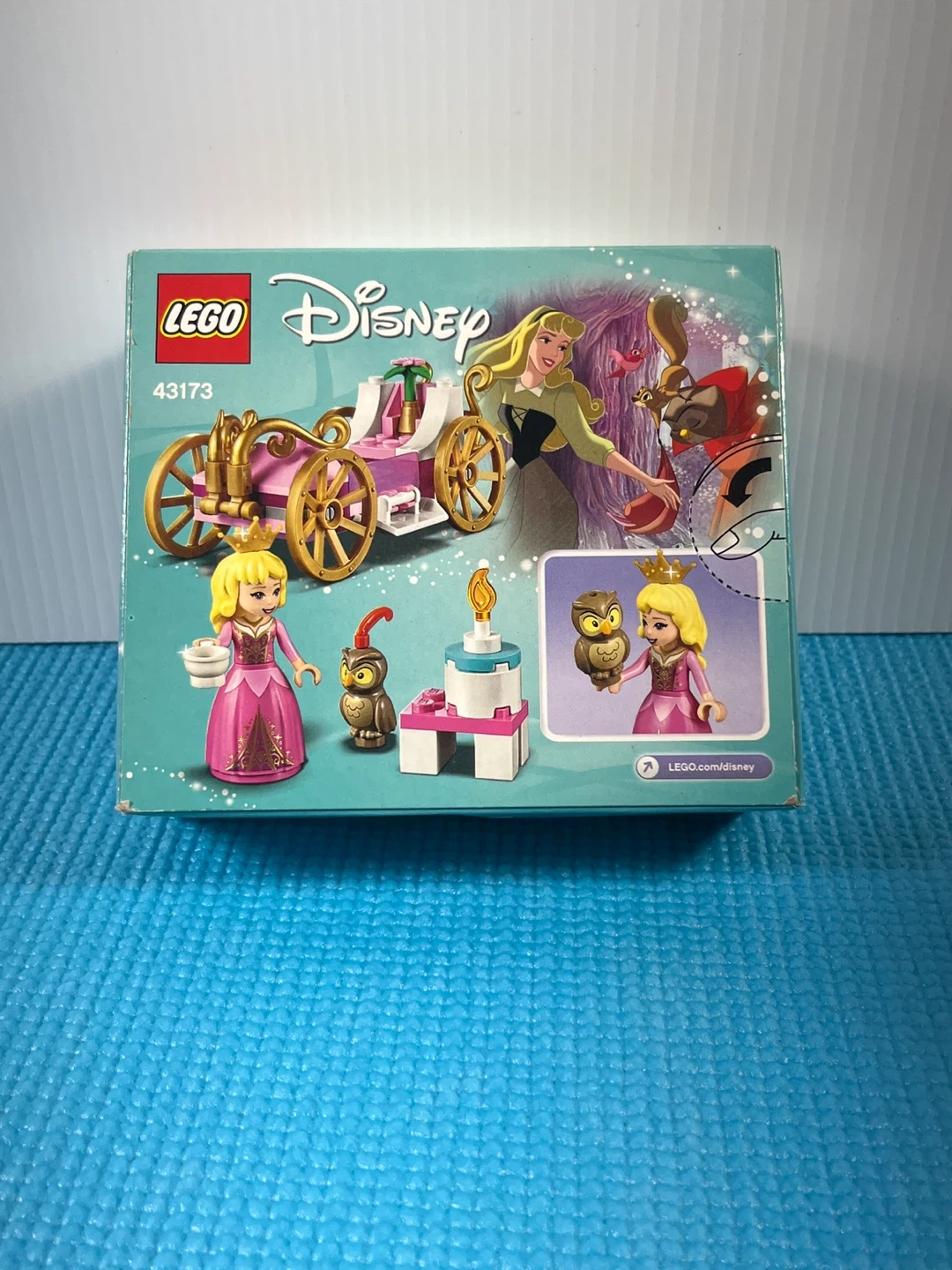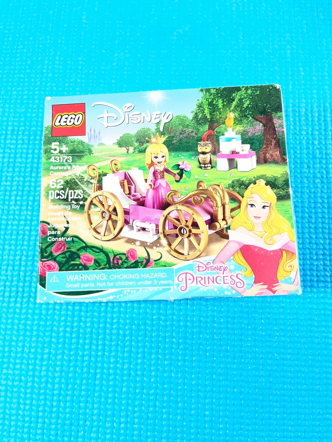 I'm offering a LEGO Disney Aurora's Royal Carriage set, number 43173, which includes 62 pieces to build a charming scene from Sleeping Beauty.