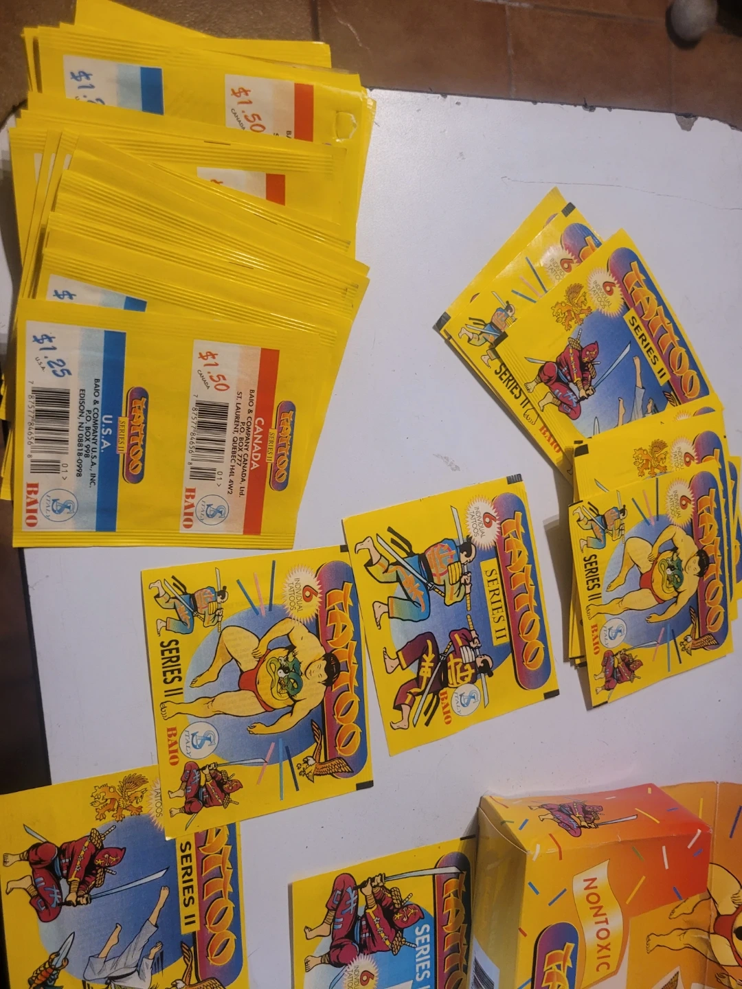 For sell is 44 Pack of 6 New Vintage 1980 Rario Mix Ninja Tattoos asking $50 for the box of 44 Pack of 6 Tattoos Each. Pick up on beaverbrook lane Kanata thank you
