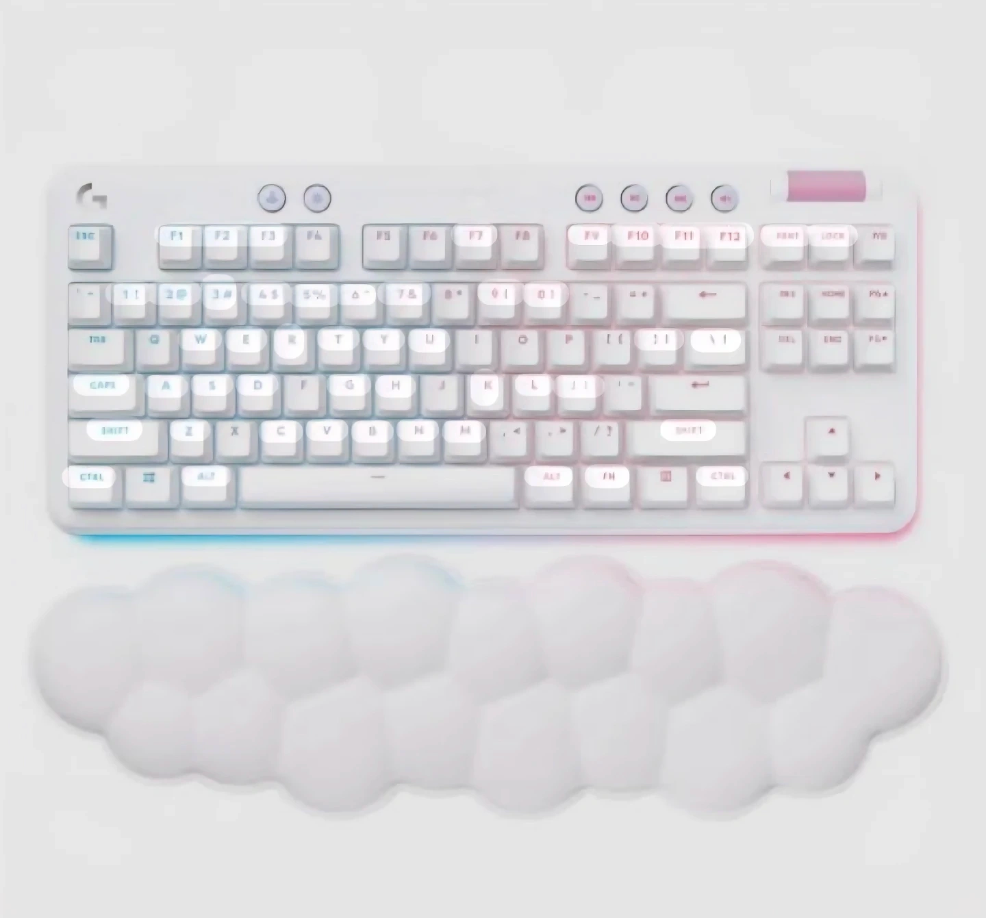 Worth $230 + plus HST, Logitech G715 Wireless Mechanical Gaming Keyboard with LIGHTSYNC RGB Lighting, Lightspeed, Linear Switches (GX Red), and Keyboard Palm Rest, PC and Mac Compatible, White Mist