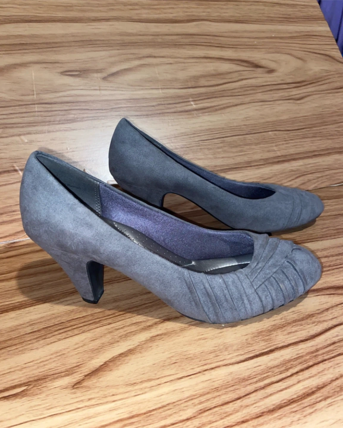 Step out in style with these Abella heels, size 9 These elegant grey heels feature a comfortable, cushioned insole and a sleek design, perfect for a day at the office or an evening out. Although they have been previously worn, they are in good condition.