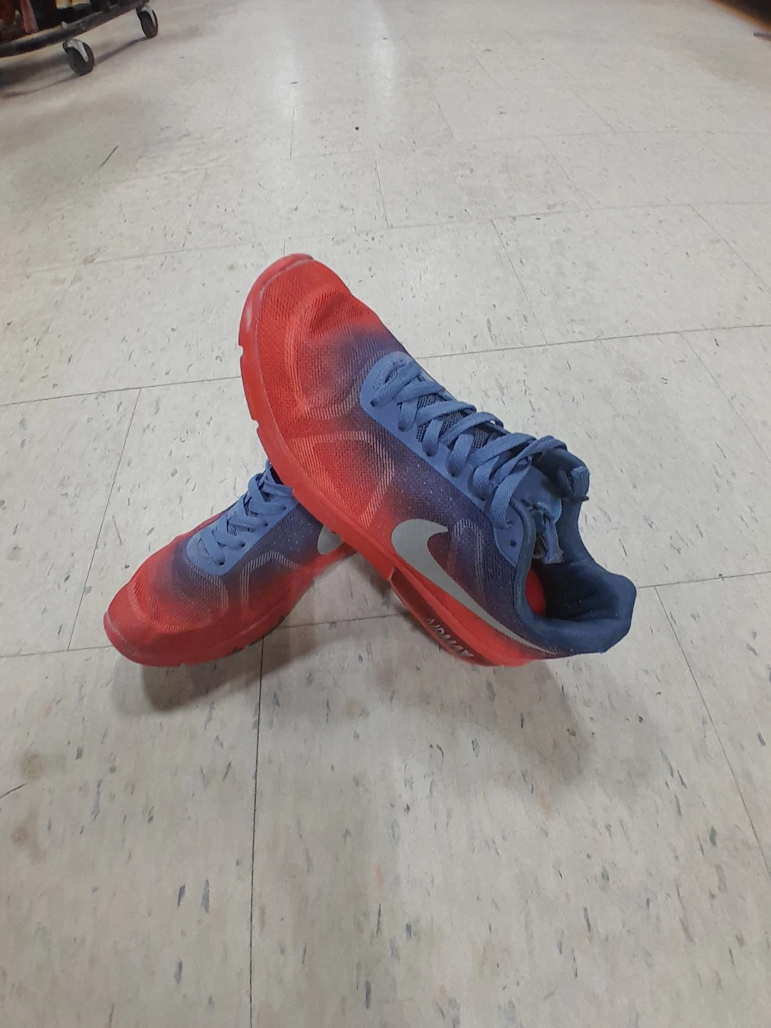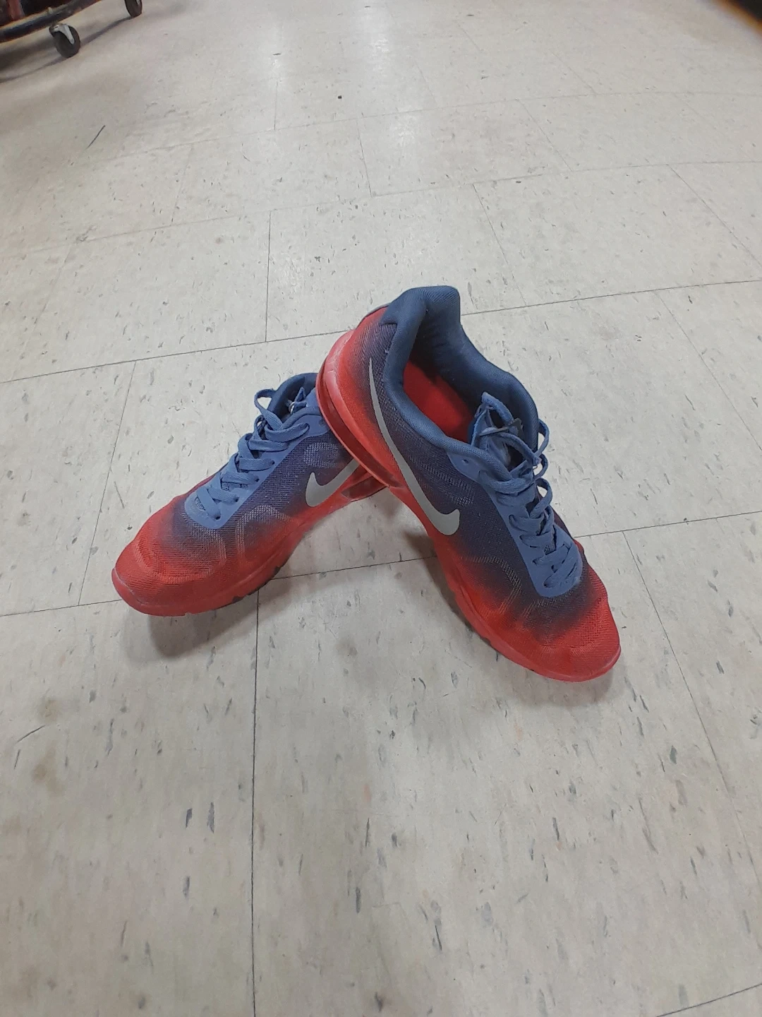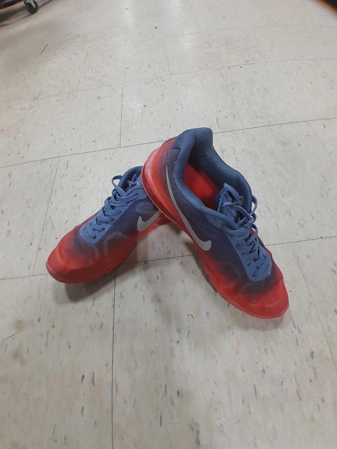 Nike running shoes feature a blue and red gradient design. They're built for comfort and performance on your runs. Mesh upper for breathability original Air Max Size 8.
