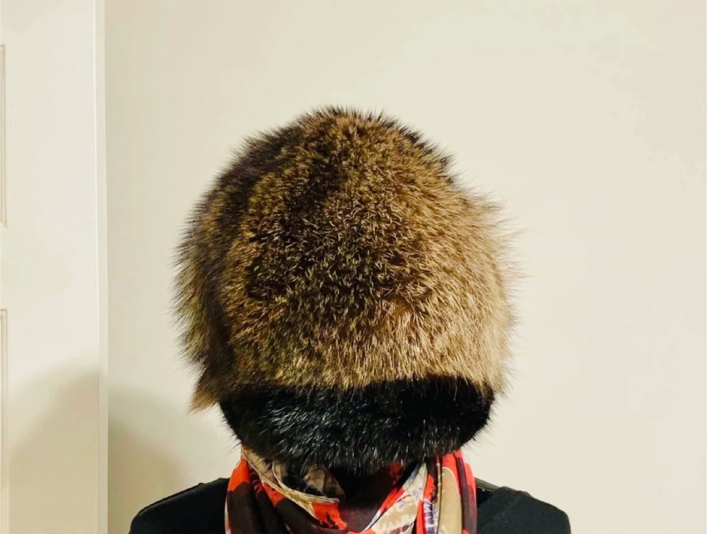 Cozy brown real fur winter hat with a dark trim. It's warm, stylish & perfect for cold weather!