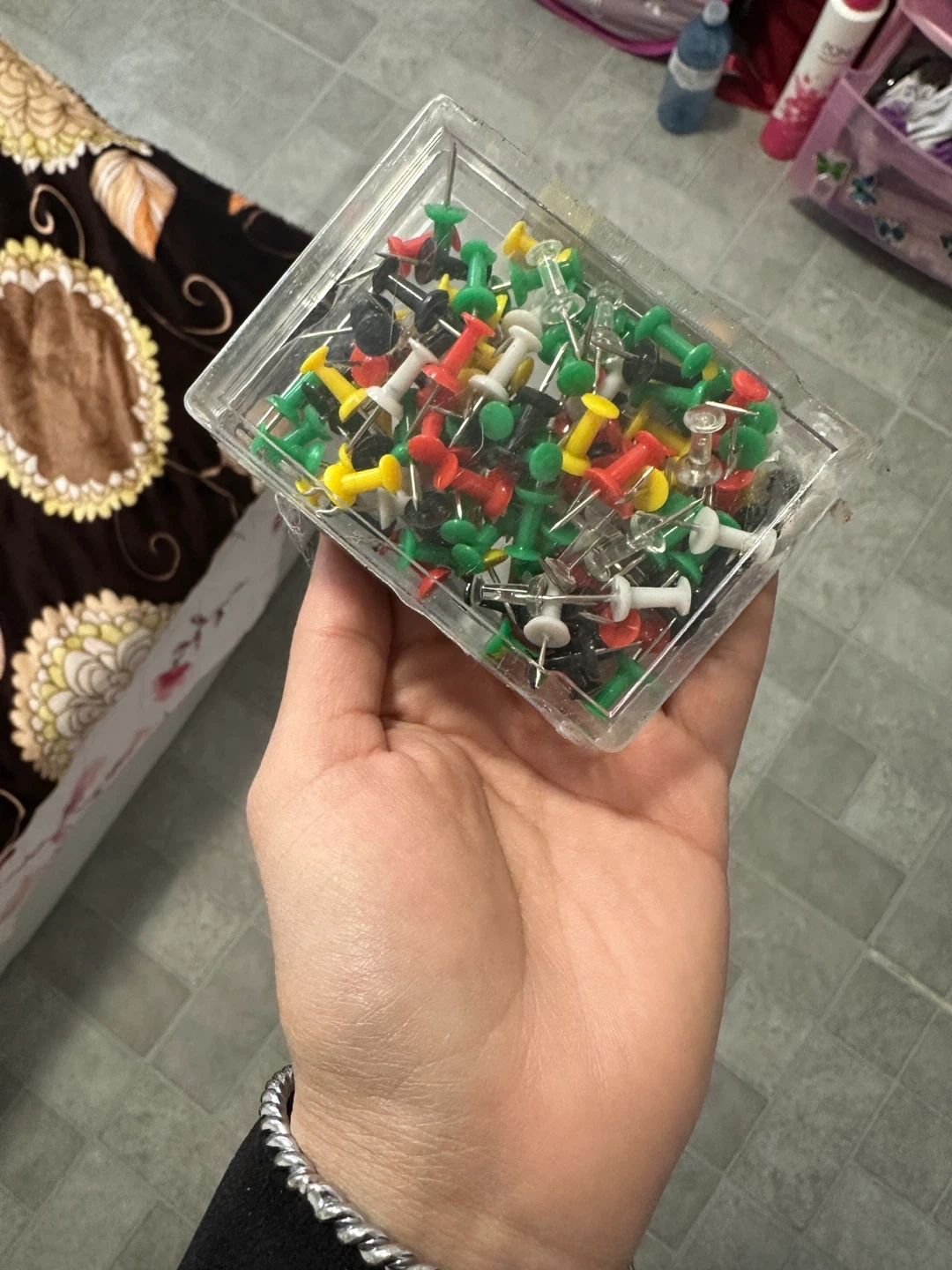 Assorted Colour Push Pins in Case