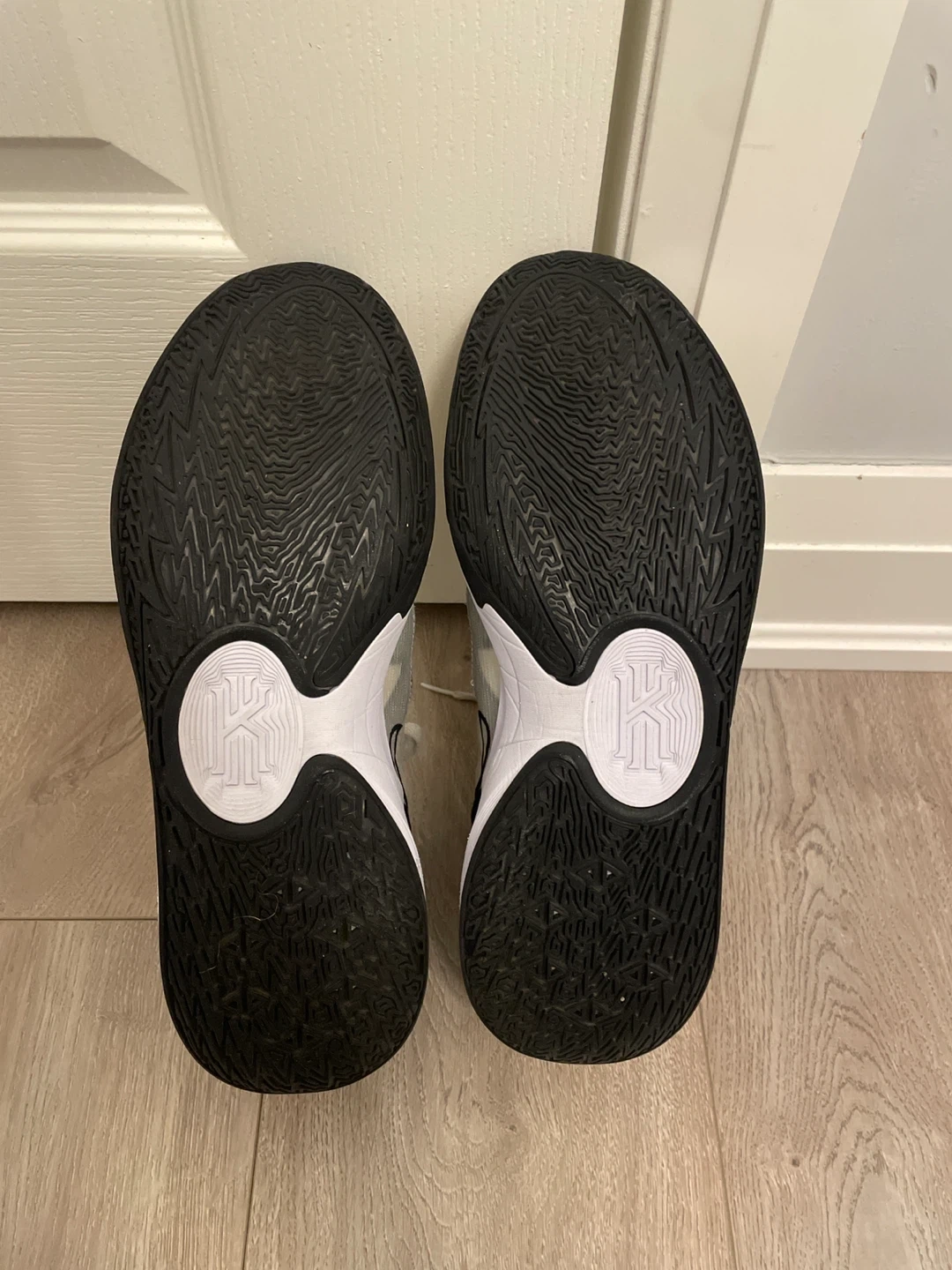 Nike Kyrie Low 5 basketball shoes in white and black. Men's Nike basketball shoe. No box.