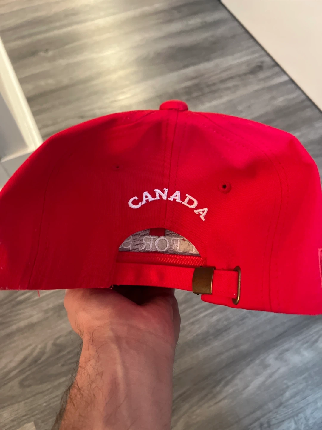 Show your Canadian pride with this red baseball cap. It features "CANADA" embroidered on the back and "CANADA IS NOT FOR SALE" on the front. Adjustable strap for a comfortable fit. New never worn