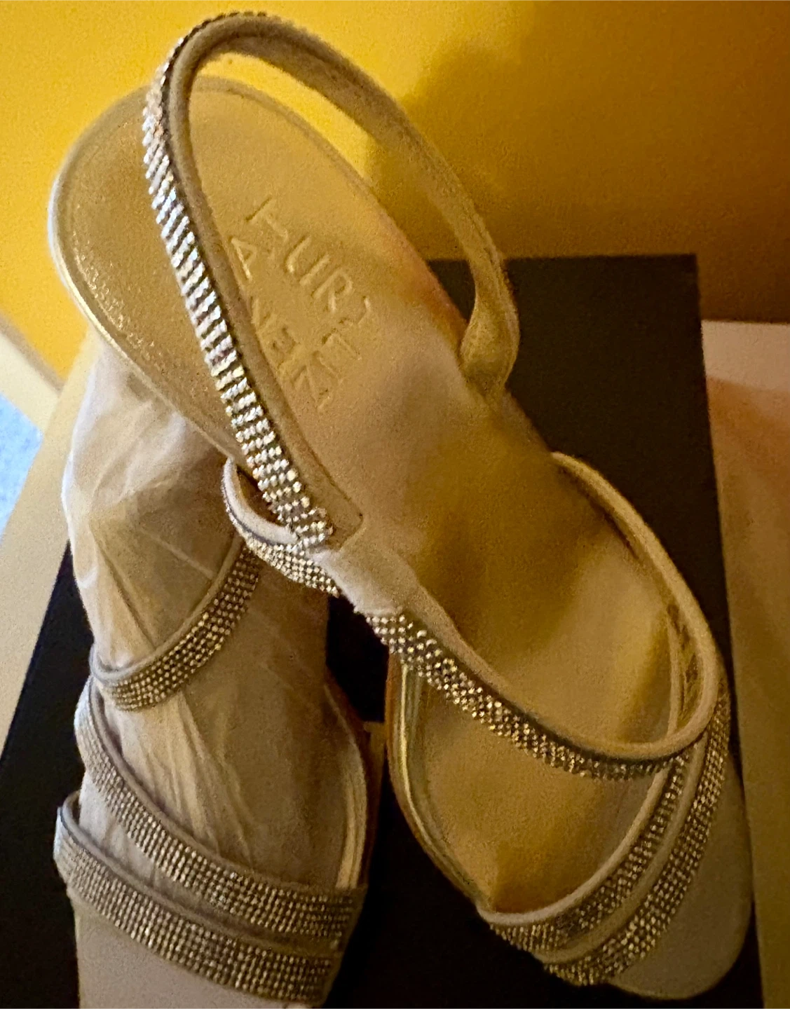 These stylish Naturalizer sandals feature a silver hue with dazzling rhinestone embellishments. They have a comfortable block heel and a secure ankle strap. These would be great for dressing up any outfit for an evening out!