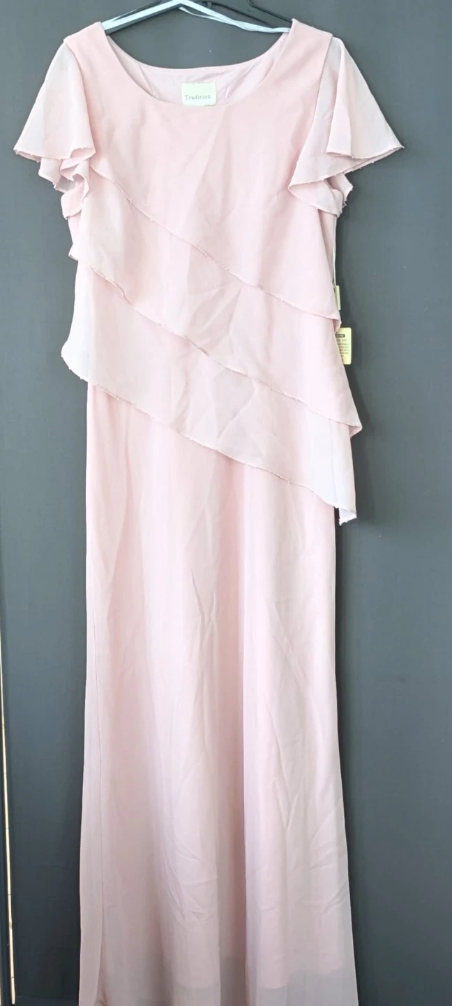 Selling a lovely light soft pink dress from Tradition by Sears. It has a beautiful layered design on the top. It's perfect for a special occasion or just feeling a bit fancy!