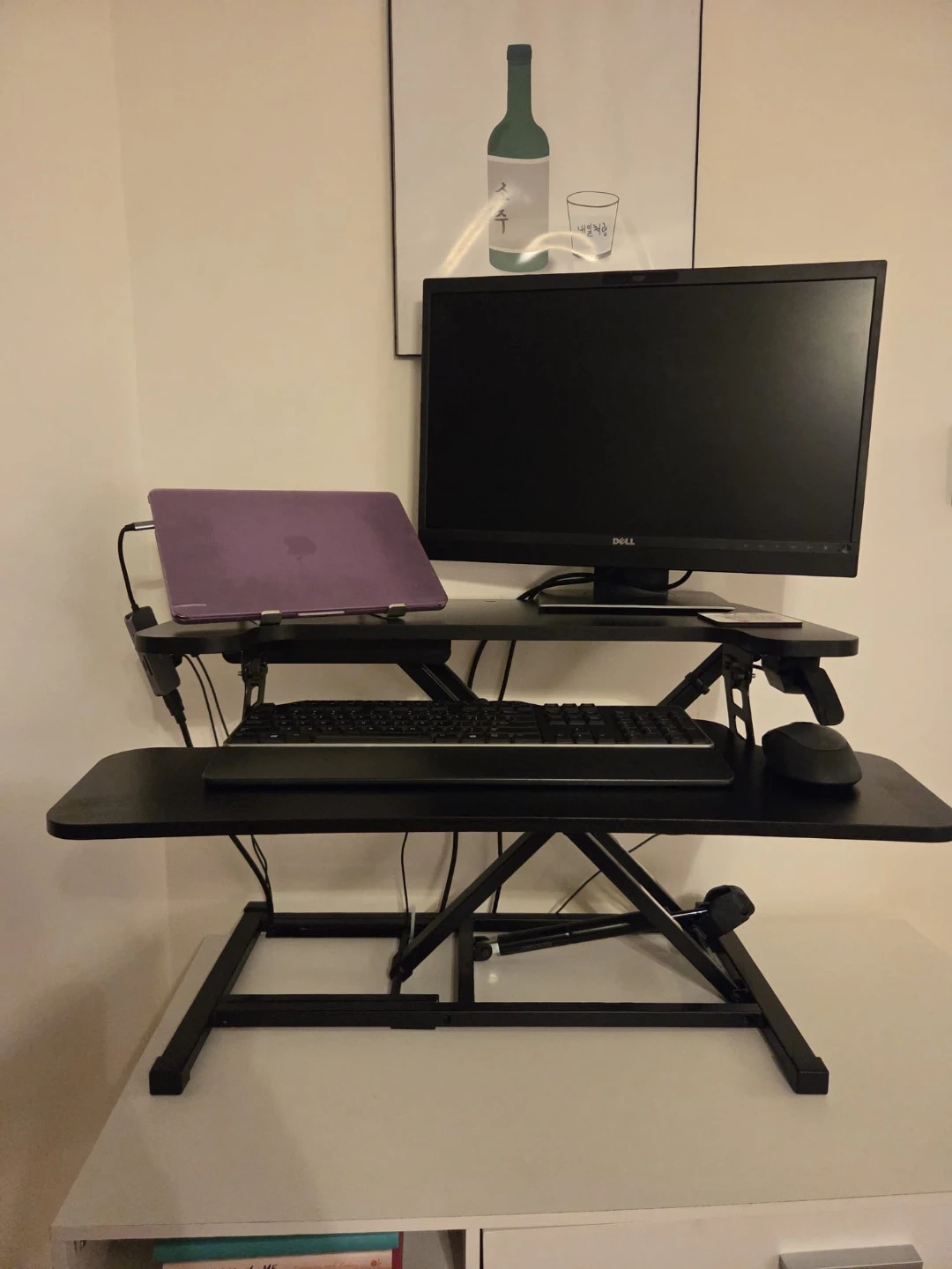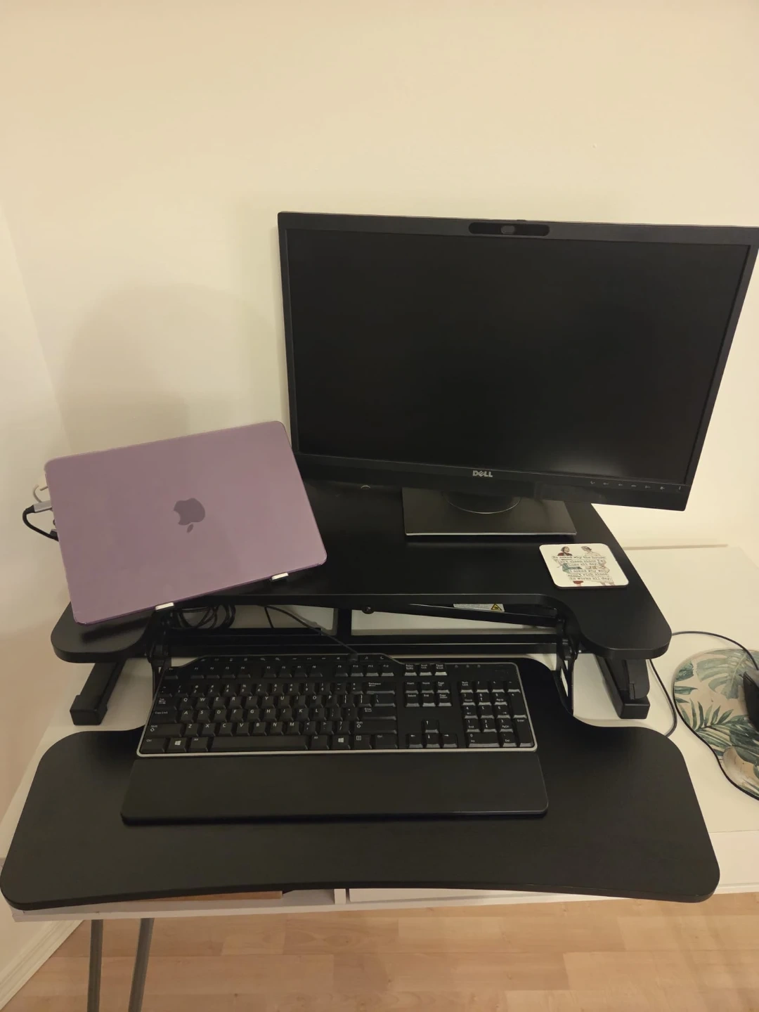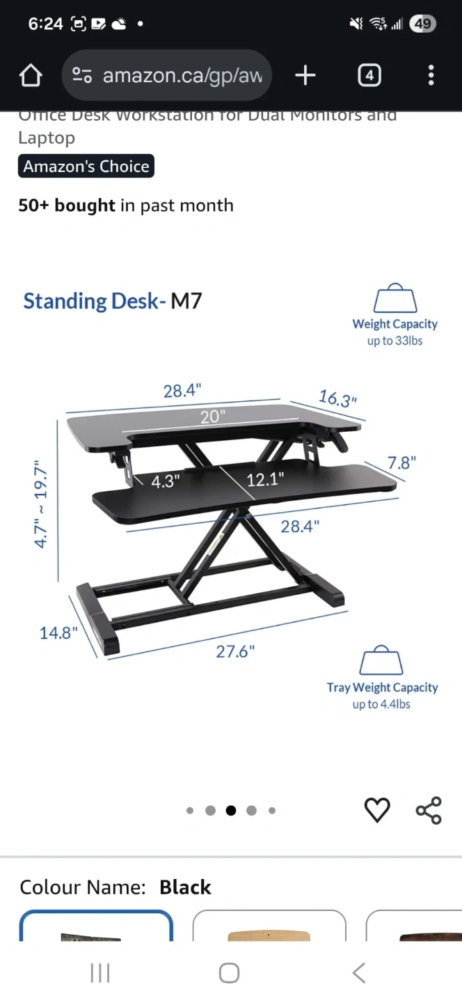 Selling a Flexispot M7 standing desk converter in black. It's a great way to switch between sitting and standing while you work! The desk is 28 inches wide and has a weight capacity of up to 33 lbs. The tray has a weight capacity of up to 4.4 lbs.