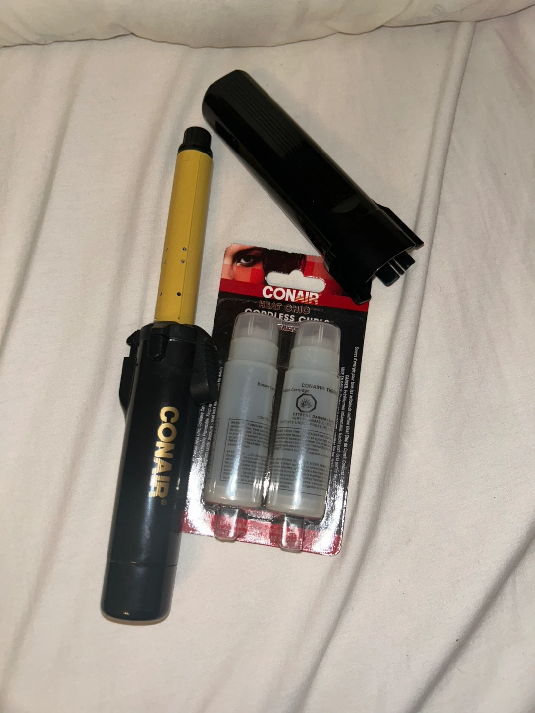 This is a Conair Heat Chic cordless curler. It comes with two butane cartridges. Never used it. I don't have the box.