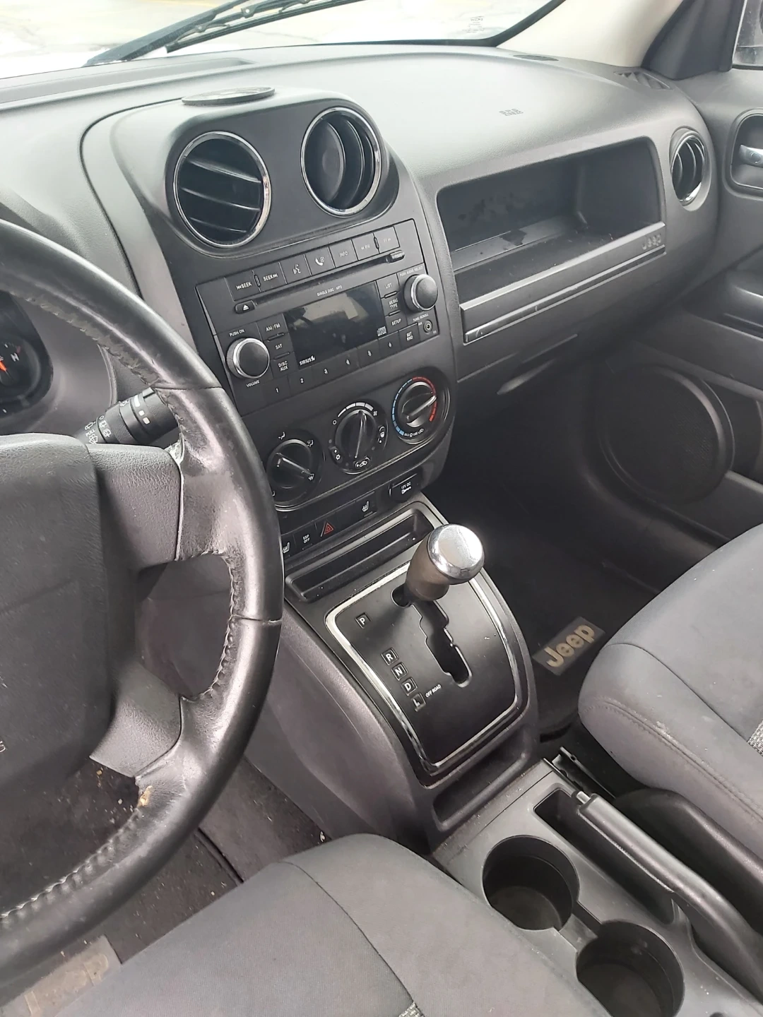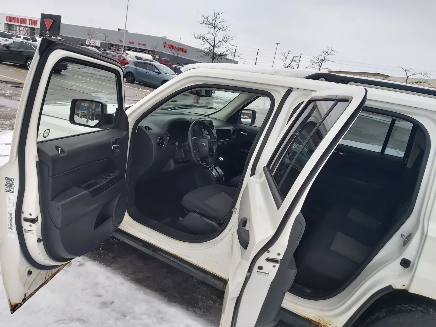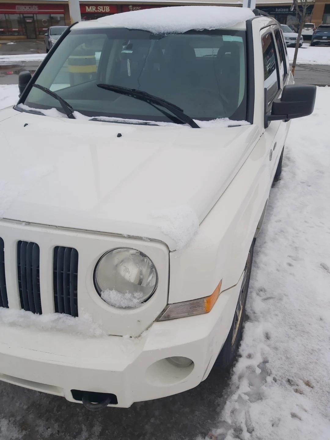 A white Jeep Patriot with 4x4 capability. It features a functional interior with automatic transmission 4x4 218 km heat seat location mississauga as is good brakes and snow tires