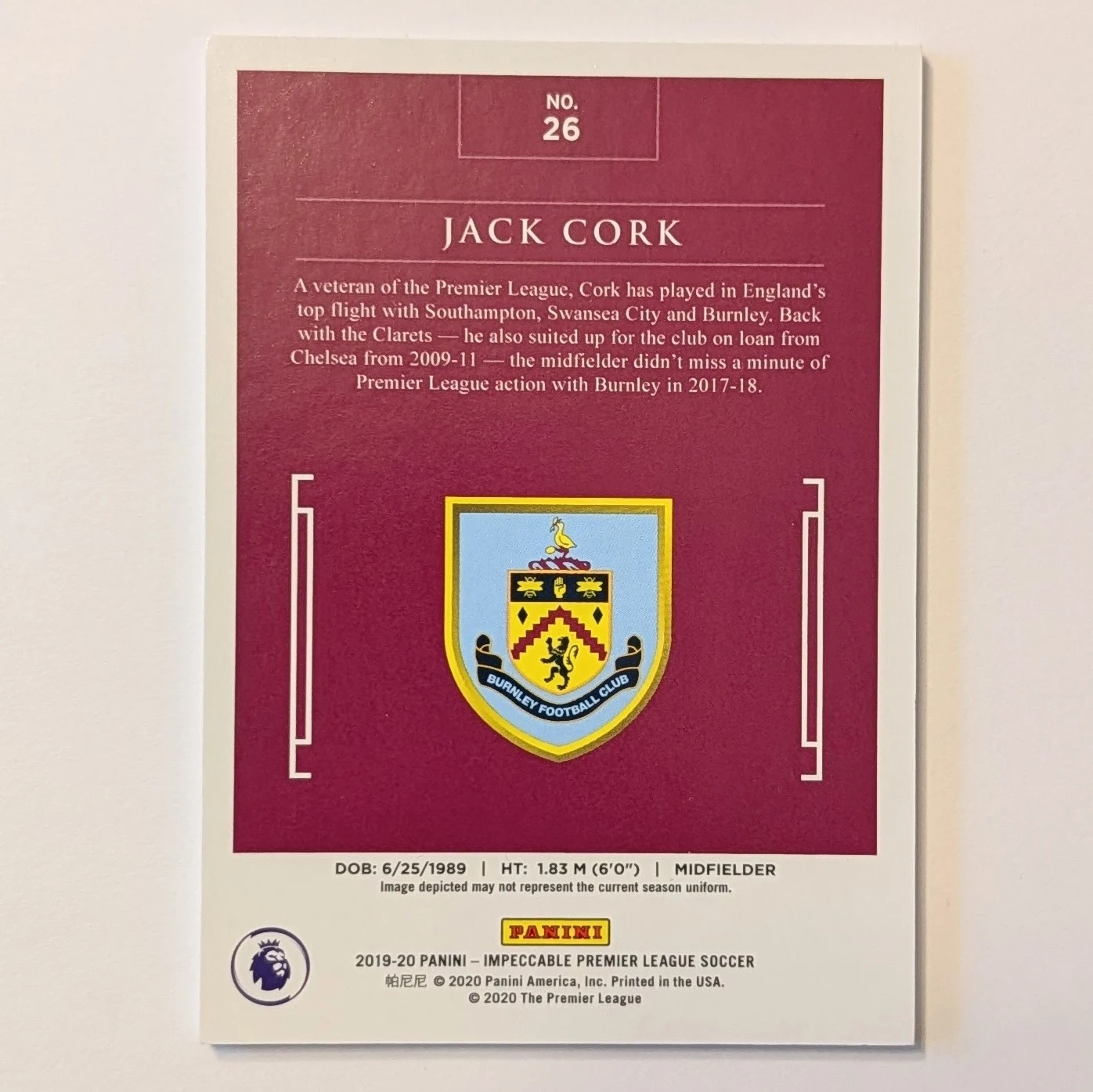 2019-20 Panini Impeccable Jack Cork Burnley FC #11/35