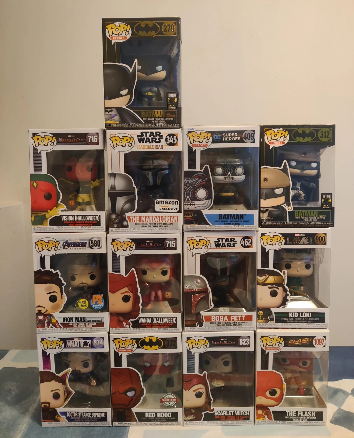 This is a bundle of various Funko Pop! vinyl figures. It includes characters from Batman, Star Wars, Marvel, and DC.
