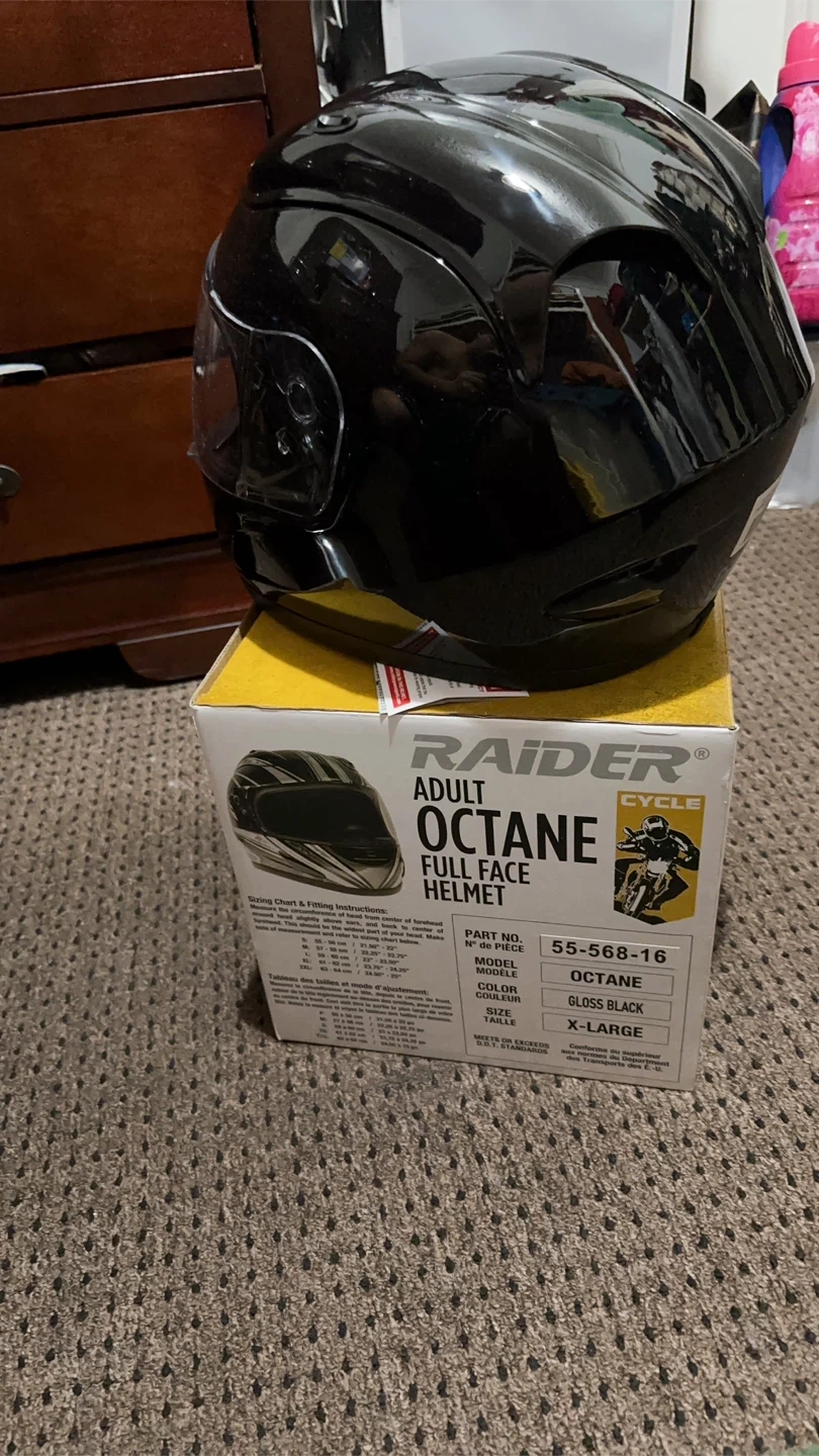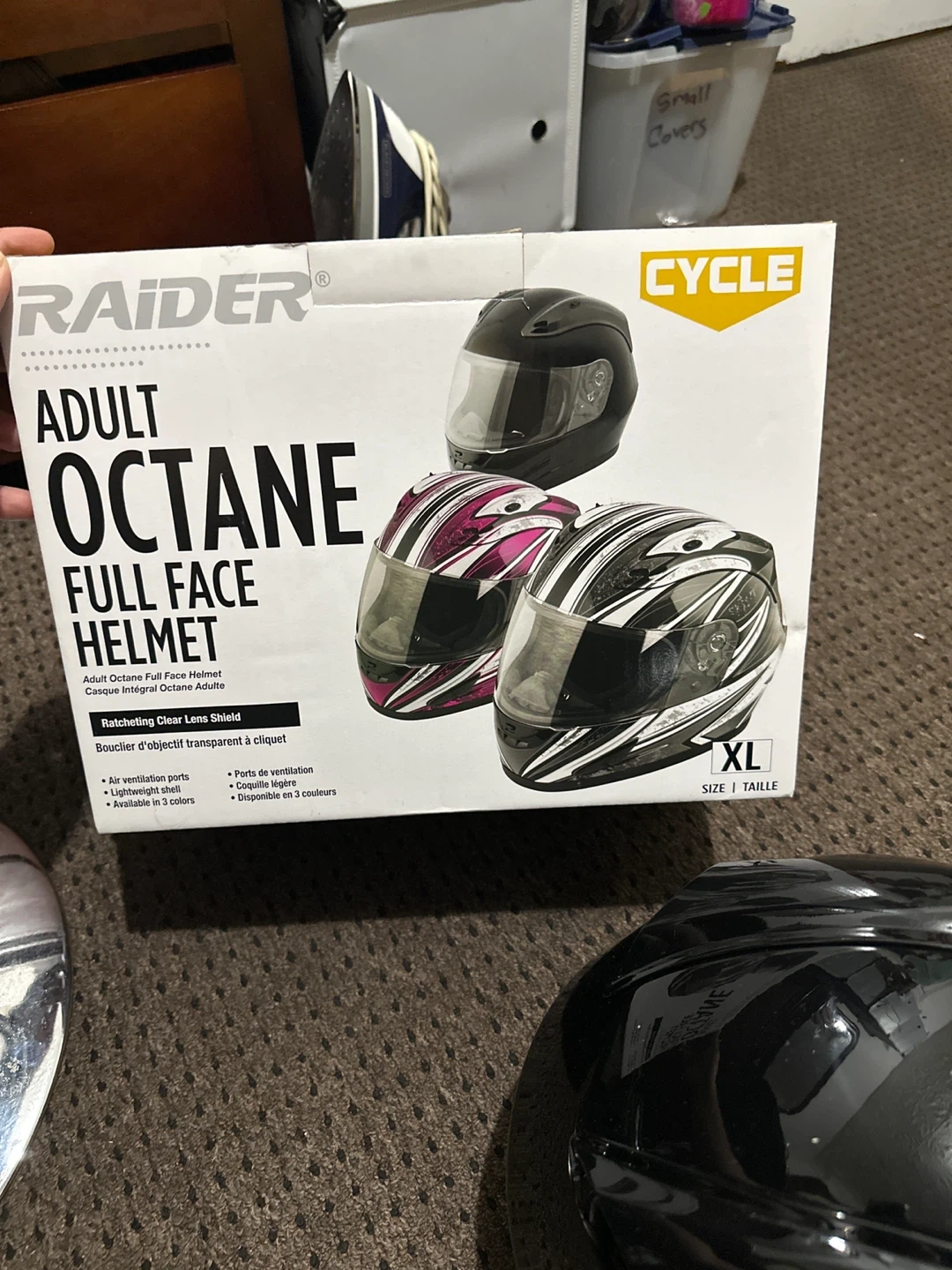Selling a Raider Octane adult full-face helmet, size XL! It's a lightweight thermoplastic shell design, and the box is included. It also has air ventilation ports for comfort