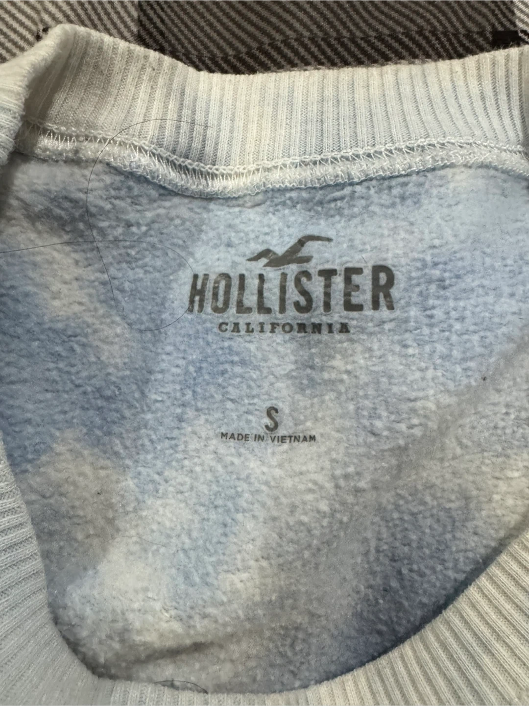 This is a Hollister sweatshirt with a tie-dye pattern. It's a size small and made in Vietnam. It features a crew neck and long sleeves.