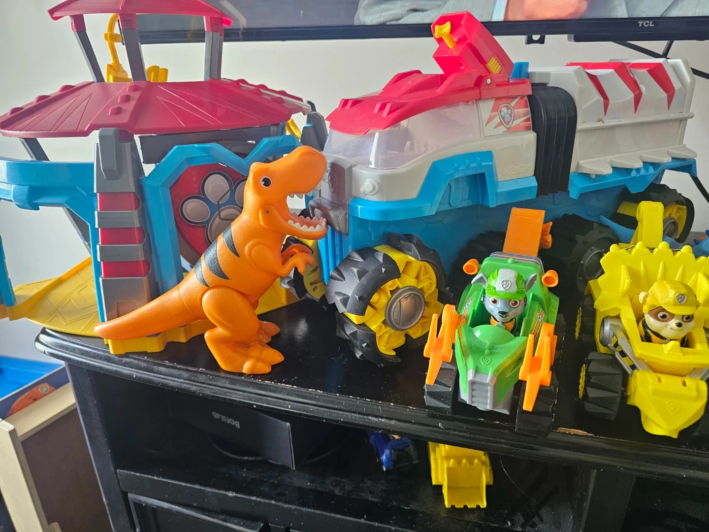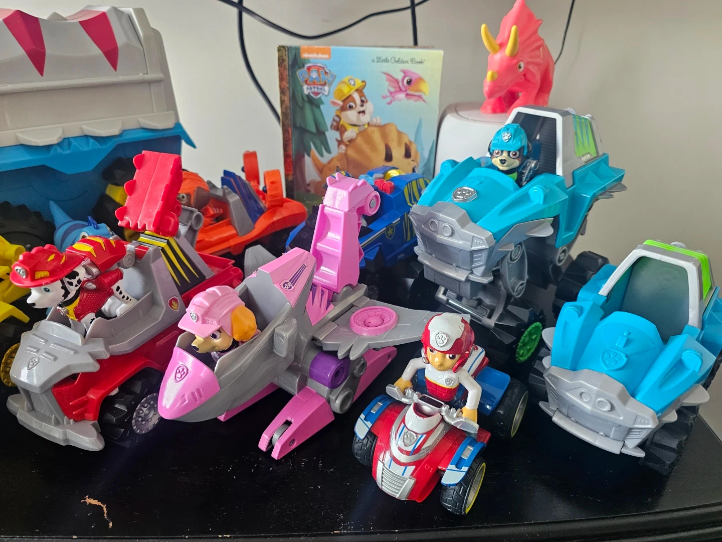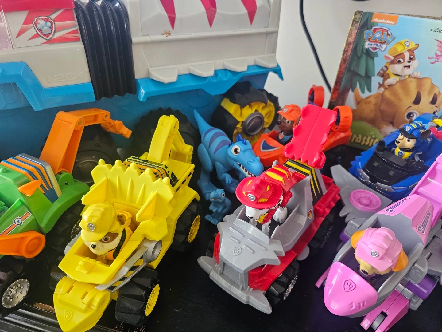 Multiple pup vehicles - rubble sky chase Marshall rocky Zuma and 2 Rex cars
