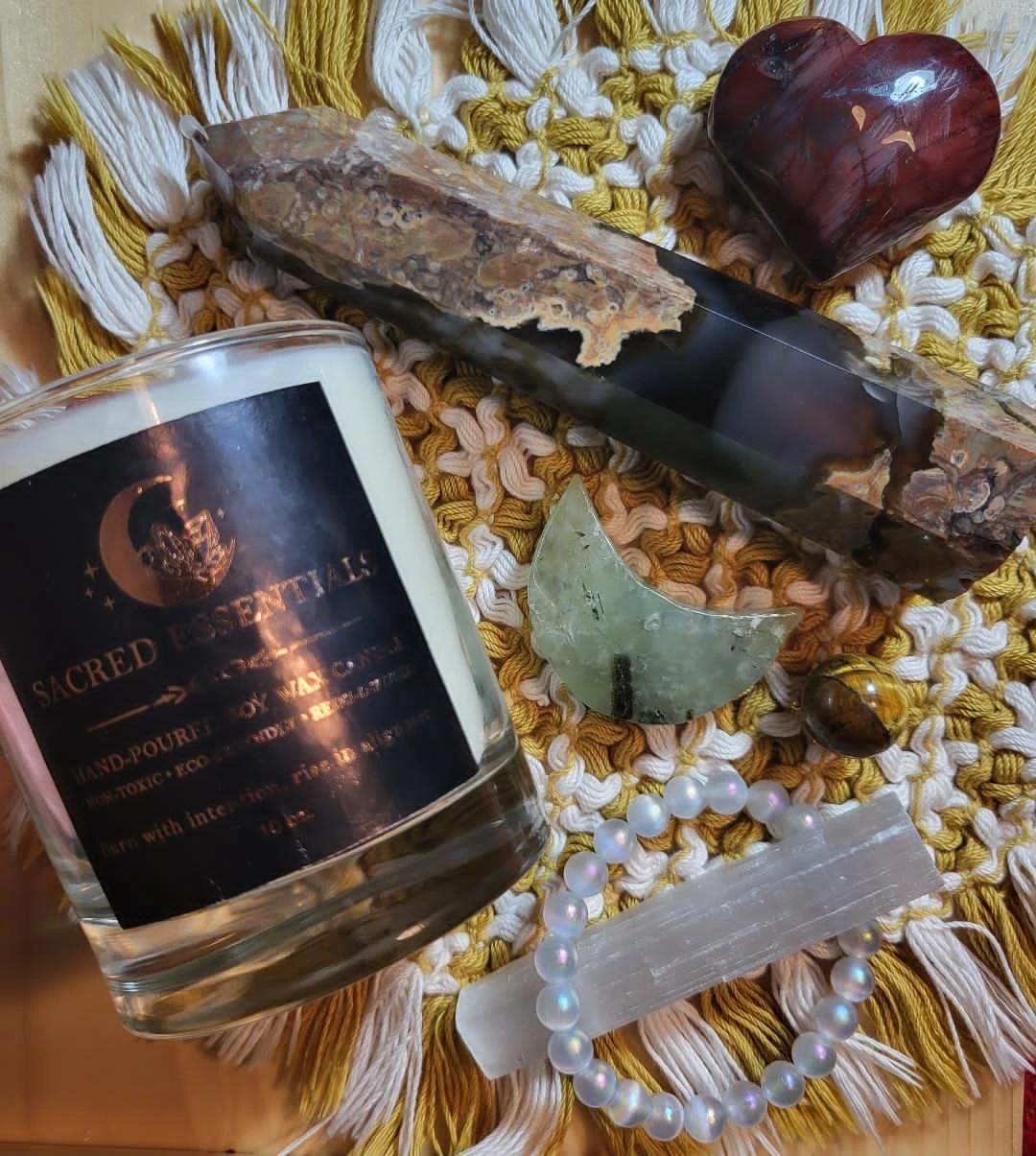 Handpoured Roast Espresso Candle topped with Mookaite Jasper (55+hr burn & 100% Soywax )