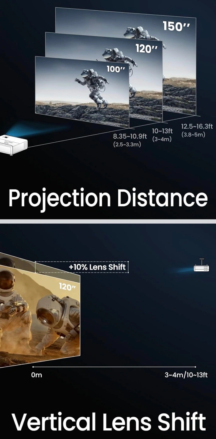 FLEXIBLE INSTALLATION: With vertical lens shift, 2D Keystone, and 1.3x zoom without the hassle of installation
