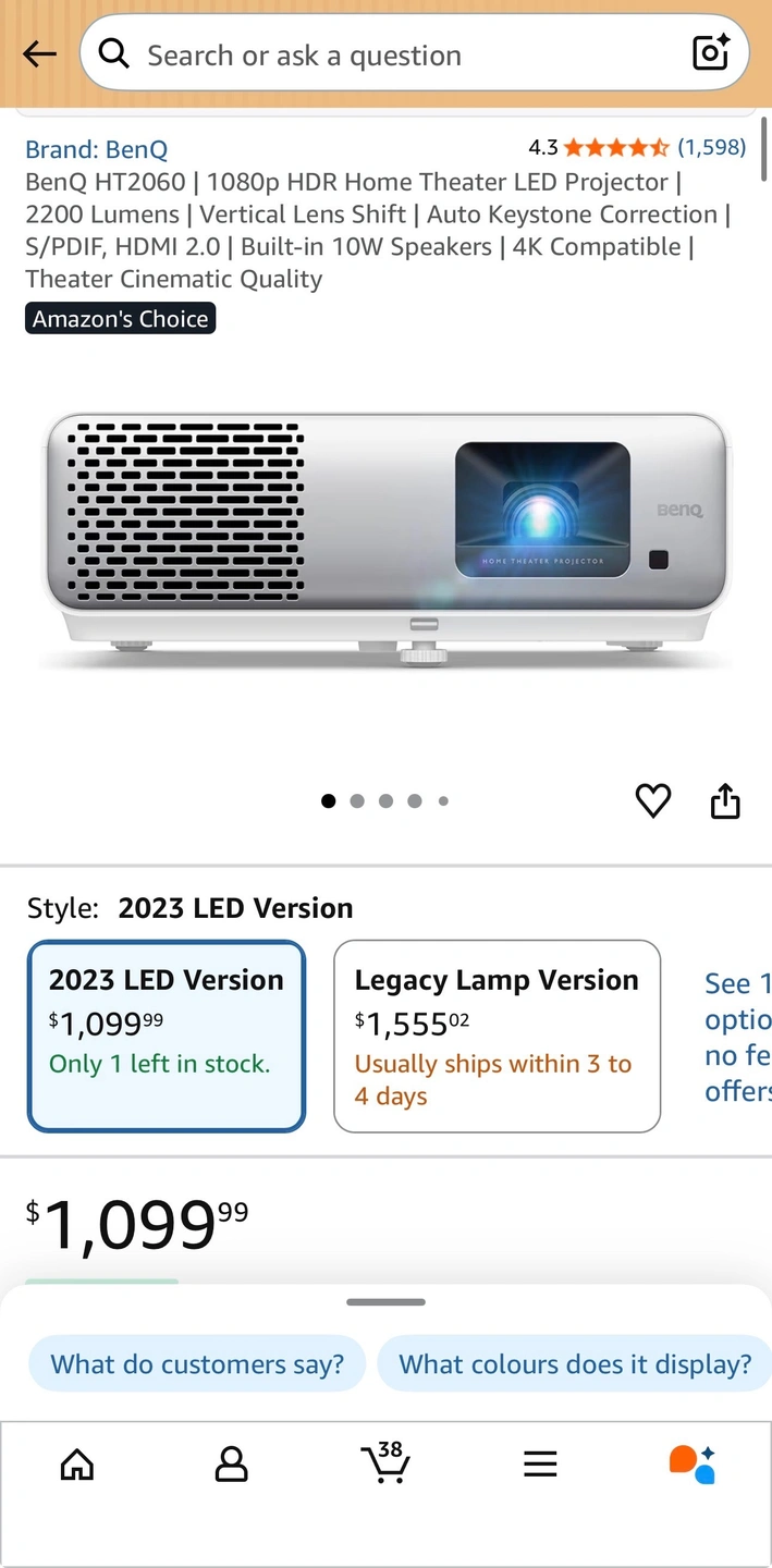 BenQ HT2060 | 1080p HDR Home Theater LED Projector | 2200 Lumens | Vertical Lens Shift | Auto Keystone Correction | S/PDIF, HDMI 2.0 | Built-in 10W Speakers | 4K Compatible | Theater Cinematic Quality