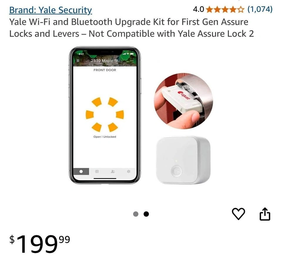 Upgrade your first generation Yale Assure Lock or Lever to work with the Yale Access App so you can control and monitor your lock from anywhere. This kit includes the Wi-Fi Connect module, so no additional hub is needed. Your door can unlock automatically as you approach with your phone, or you can use the keypad. It works with voice assistants like Alexa, Google Assistant, and Siri. Includes DoorSense to let you know if your door is open or closed. Compatible with Apple HomeKit. Offers bank-grade encryption and a lost phone feature for added security. Please measure your door's backset, cross bore, and thickness to ensure compatibility. Pick up in Courtice. Please check my other listings.