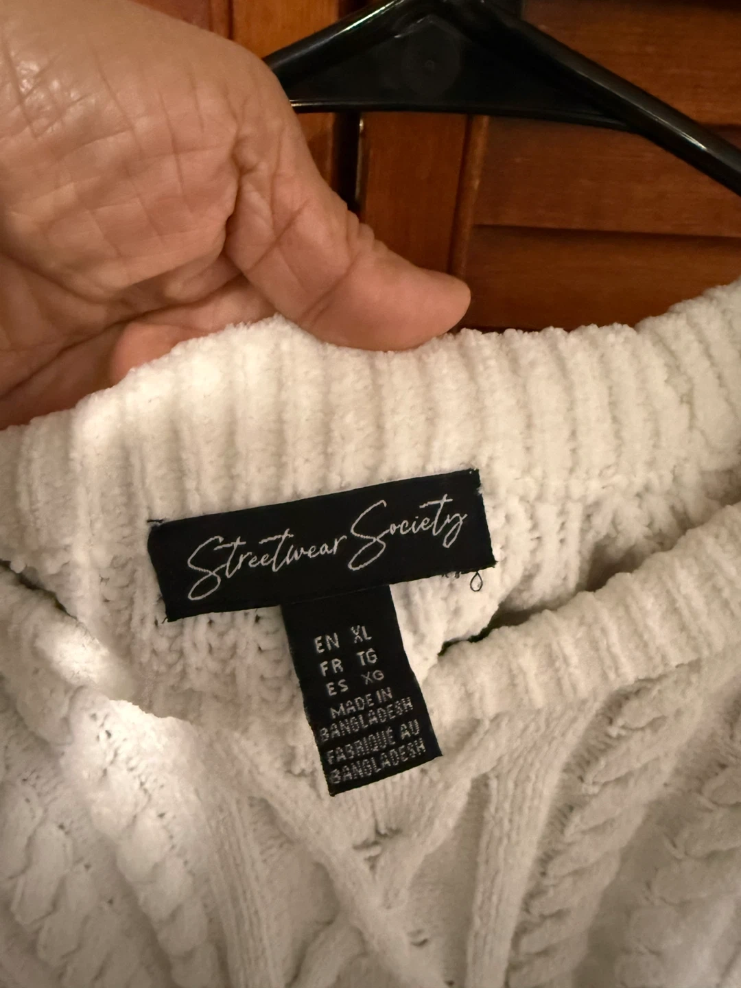 Cozy white sweater from Streetwear Society, size XL. It's in great condition and ready for a new home! The material is soft and perfect for layering during the cooler months