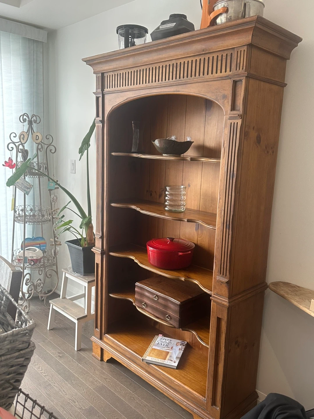 Wooden Bookcase with Arched Top