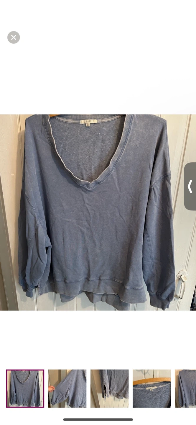 12Z supply brand. vneck lighly cropped square cut sweater. BLue in colour. Size medium. Brand new condition $25 Pickup between kincardine & ripley or I can arrange delivery in port Elgin-Owen sound, walkerton-Durham, wingham-listowel-kw/cambridge, goderich-bayfield, Woodstock & Arthur-Orangeville-Newmarket-Lindsay-Peterborough AREAS.