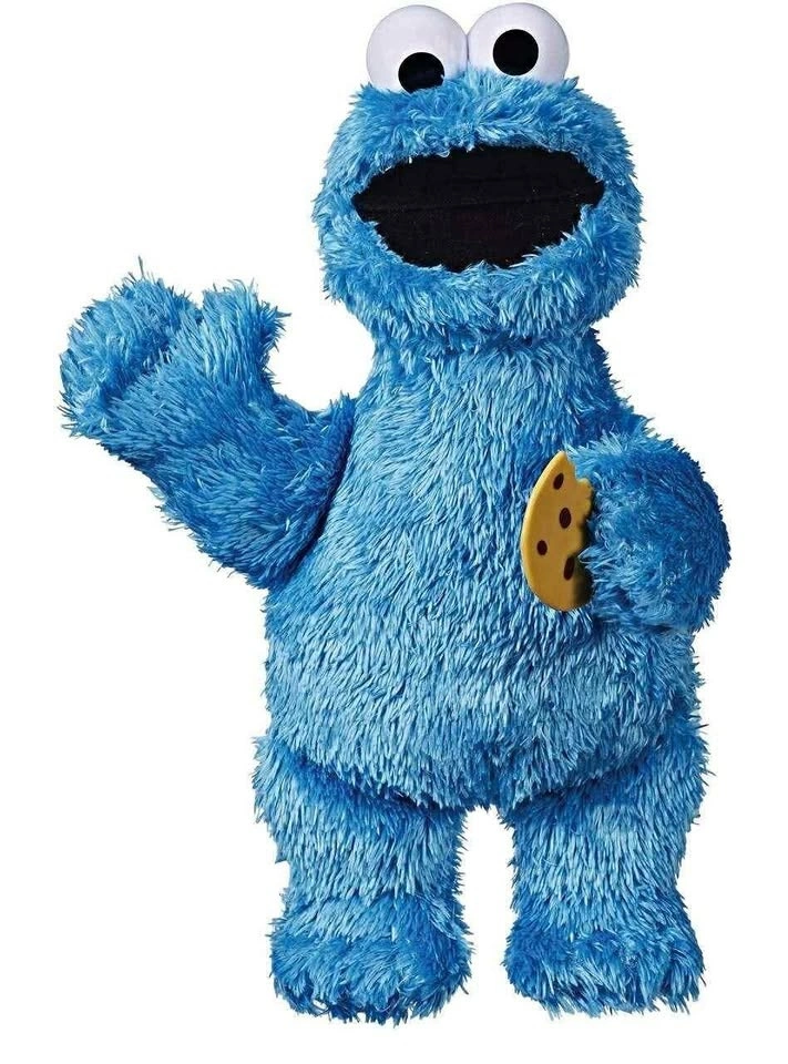 Om nom nom! Cookie Monster is here, and this furry blue monster is hungrier than ever! Little ones can unleash their appetite for fun by pretending to feed the Cookie Monster toy his favourite snack - a cookie! He will respond with silly sayings, such as "Me Love Cookie" and "One More Cookie Please!" Hungry for more fun? Squeeze Cookie Monster's belly to hear more silly phrases, his iconic belly laugh, and to hear him sing a song! Features signature sounds and tummy rumbling. Pretend to feed Cookie Monster his favourite snack - cookies. Press Cookie Monster's tummy for silly phrases and to hear him sing. Plastic chocolate chip cookie secured to Cookie Monster's hand. Soft, lovable, huggable plush. Ages 18 months to 4.