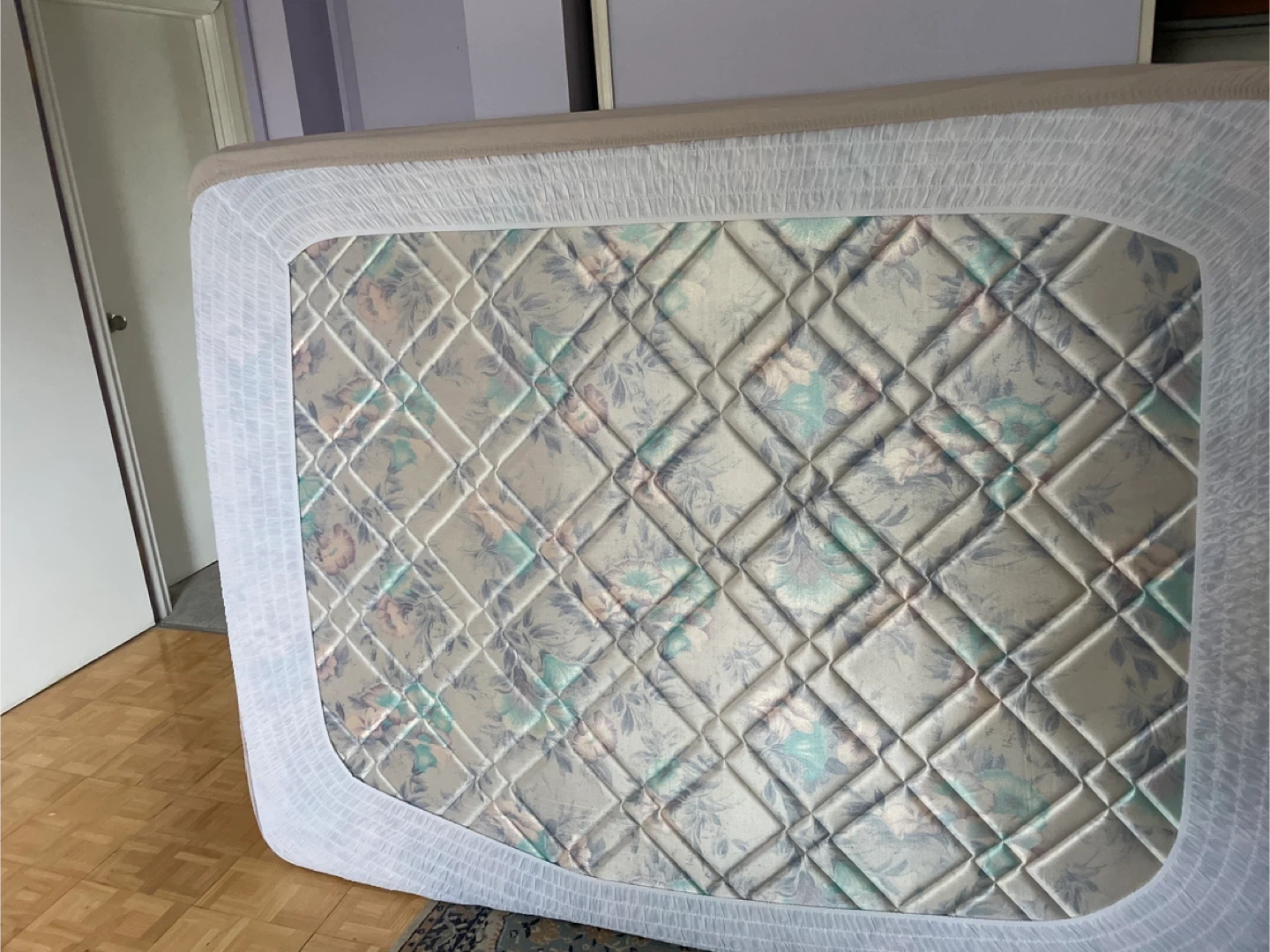 Queen size mattress with a floral quilted pattern. It's a standard innerspring mattress. Suitable for a guest room or spare bedroom. I will drop it off anywhere in Bradford.