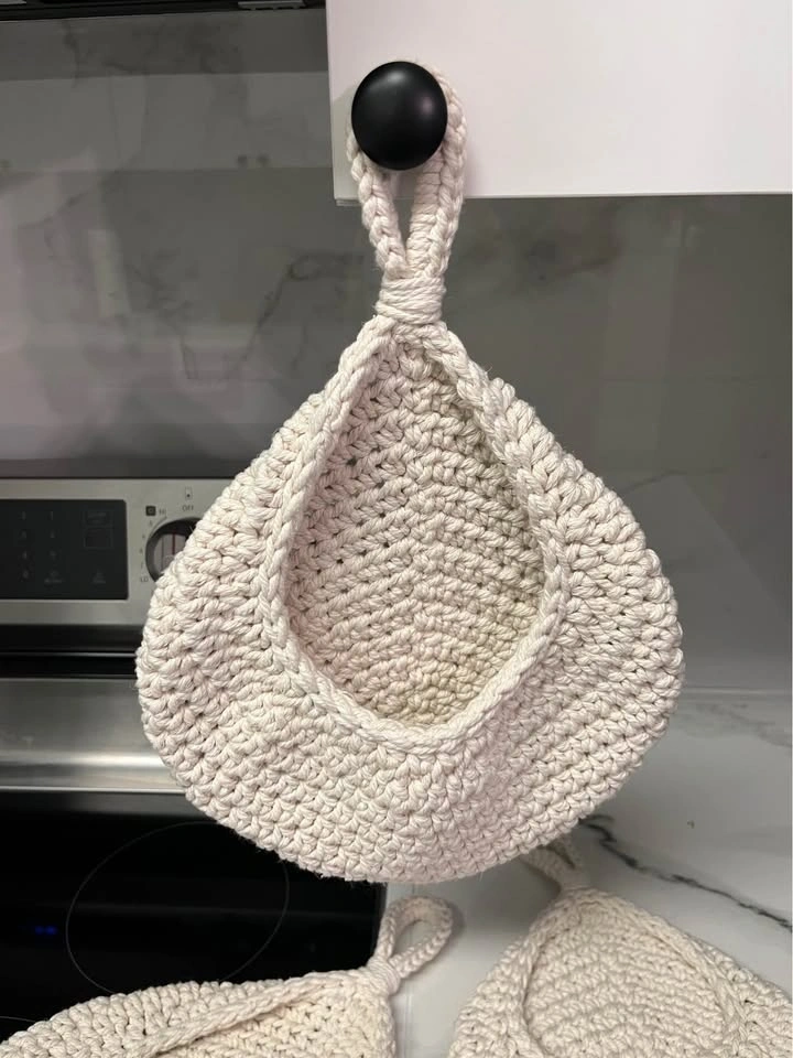 Wall hanging macrame baskets, very sturdy. They can hold a good amount of stuff. Used for fruits, but really can go anywhere. Pickup only in Leduc. $20 obo