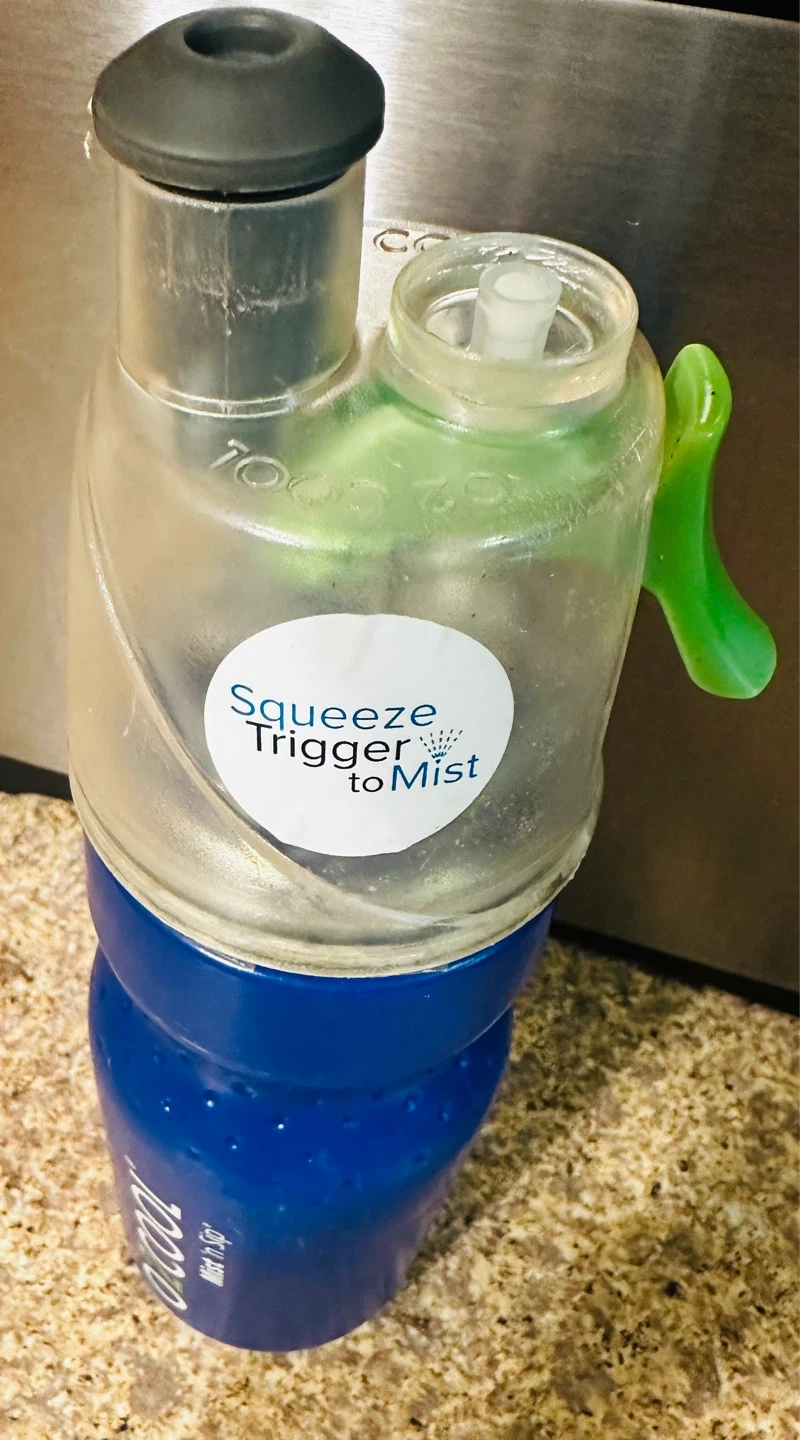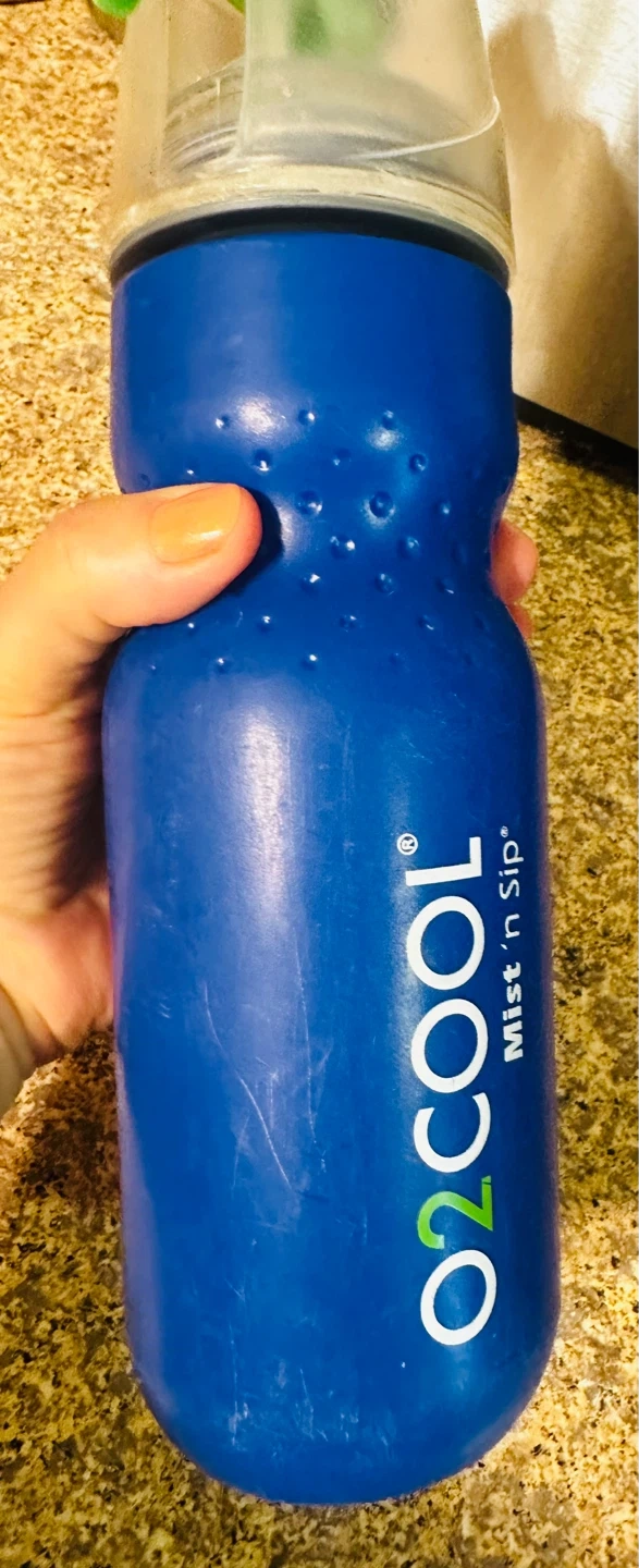 This O2COOL Mist 'n Sip bottle keeps you hydrated and cool. It features a spray nozzle to mist you on demand. Squeeze the trigger to mist!