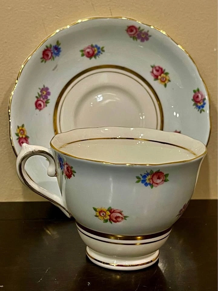 Colclough Cup and Saucer Bone China Light Blue Scallop Rim Engla