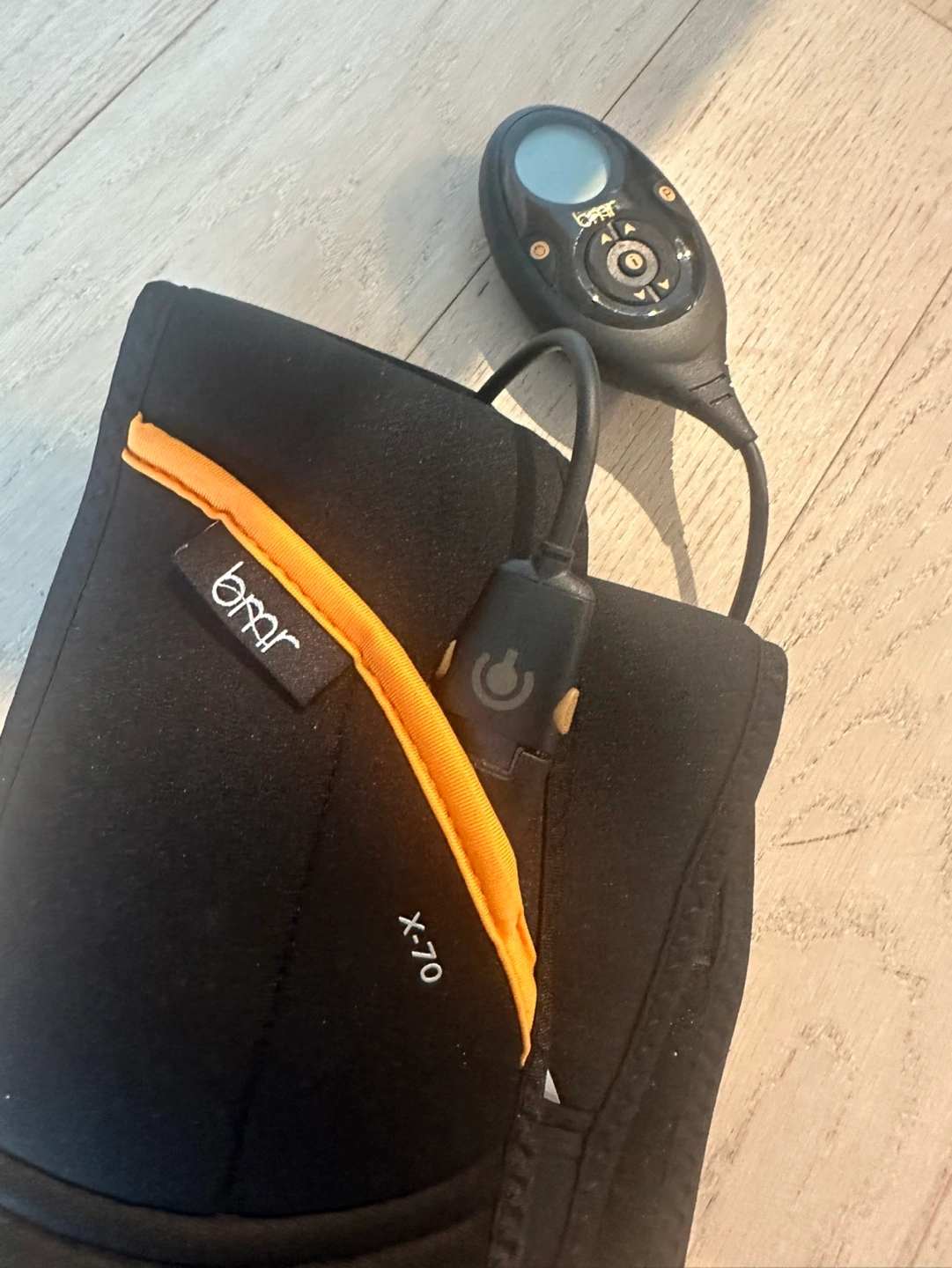 Belavi X-70 TENS unit. Includes control unit and wrap. Used but in good condition.