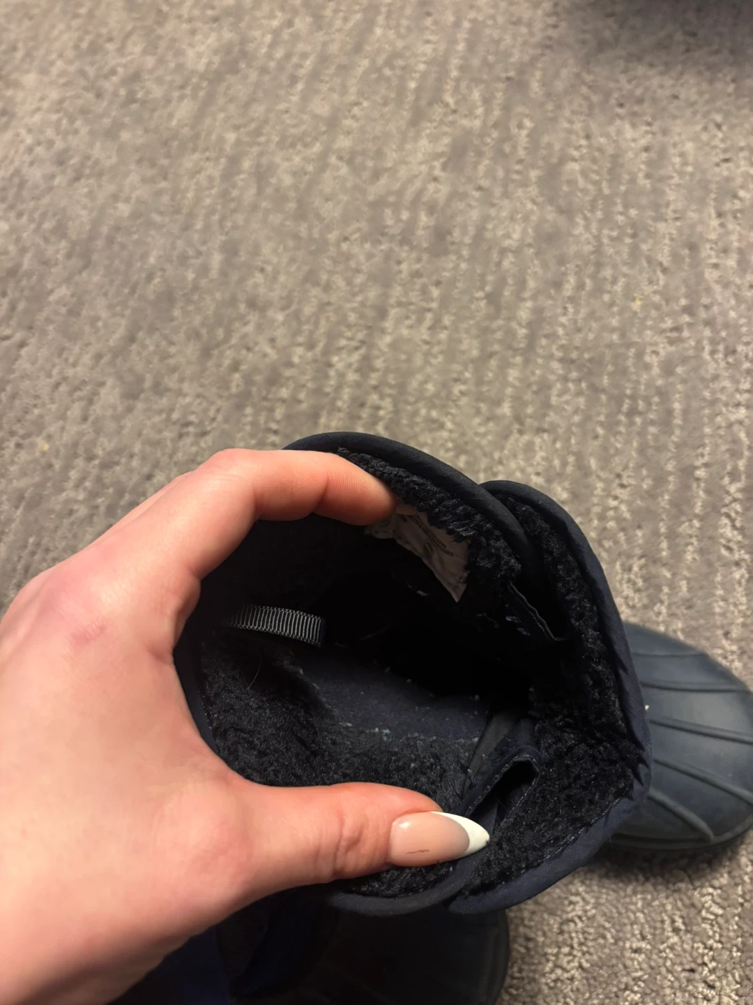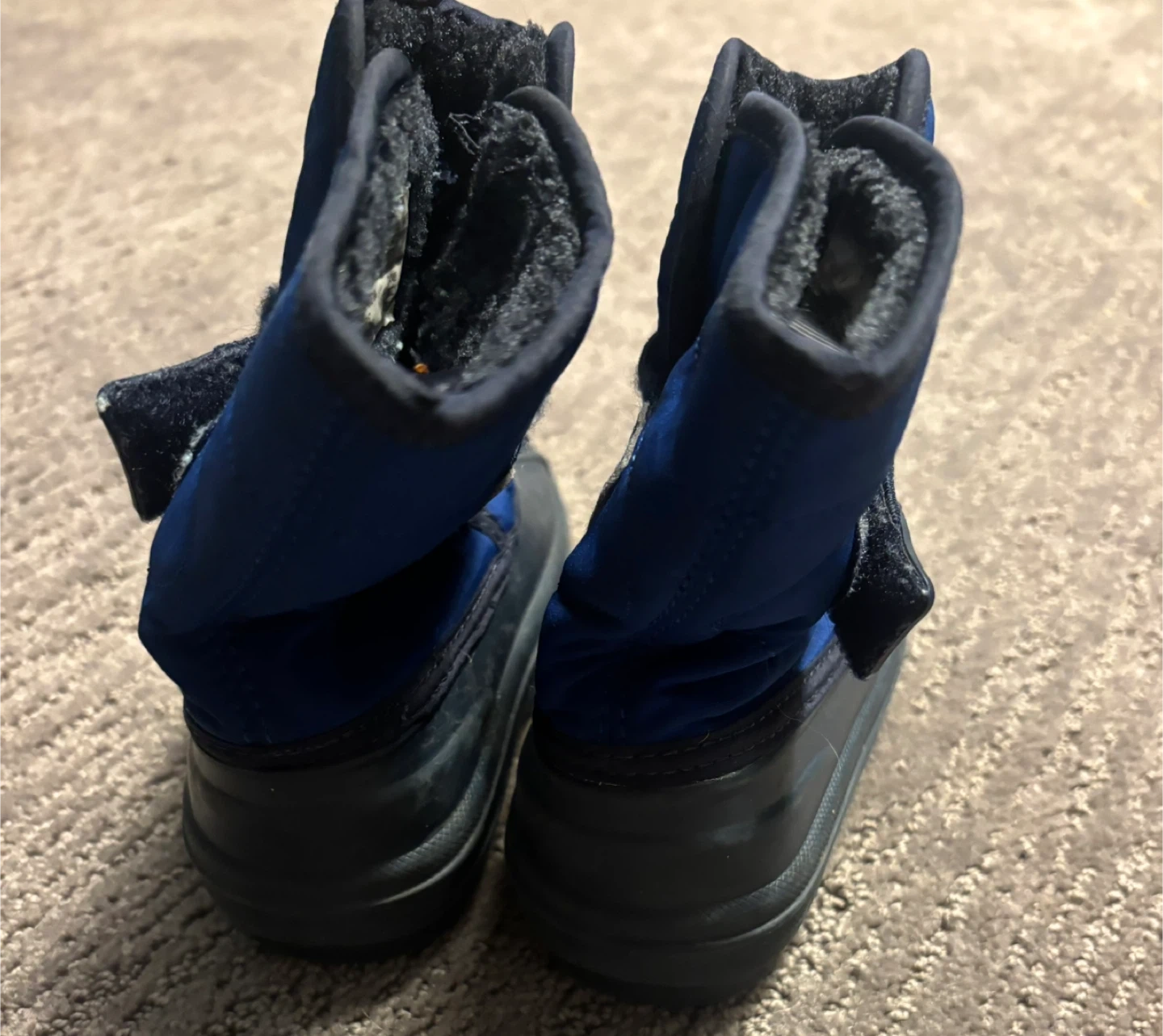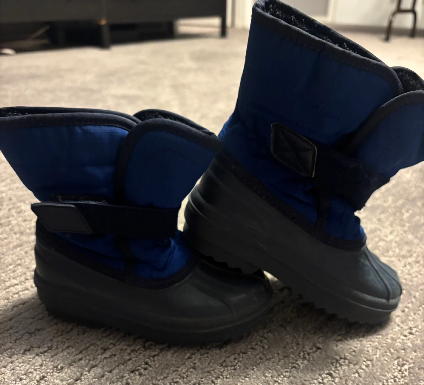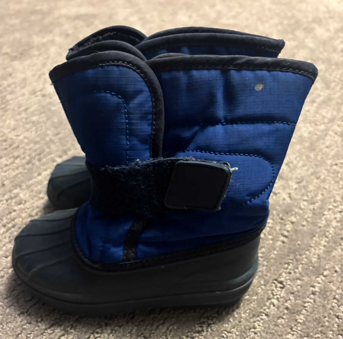 Toddler winter boots in blue from The Children's Place. They're a size 8 with velcro closures for easy on and off. Perfect for keeping little feet warm and dry during snowy weather!