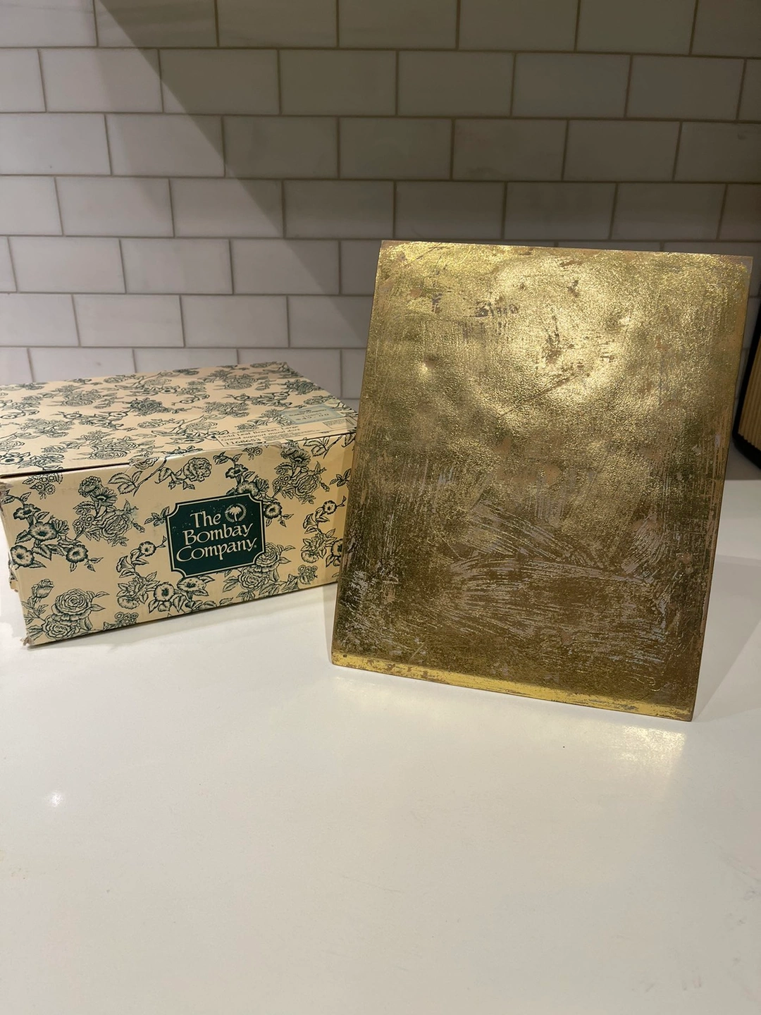 Bombay Company Gold Leaf Shelf. Is 9 inches tall, 8 inches wide and has a 4 inches of shelf space. Never used. Trafalgar & Dundas Oakville area.