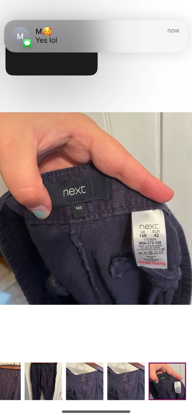Next brand. Linen like material capris. Double button & zipper fly. Navy blue in colour. Size 14 regular. Brand new condition
