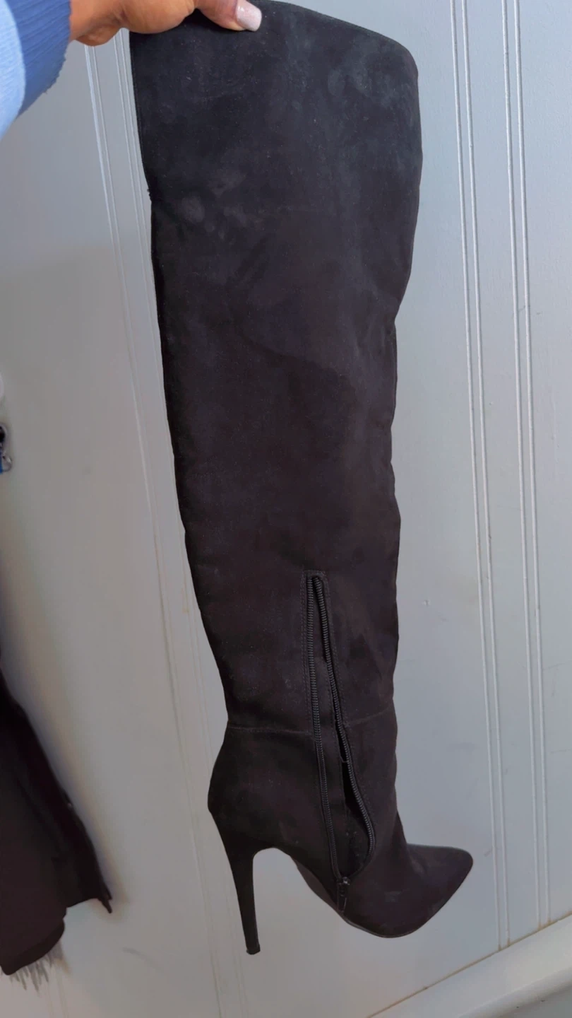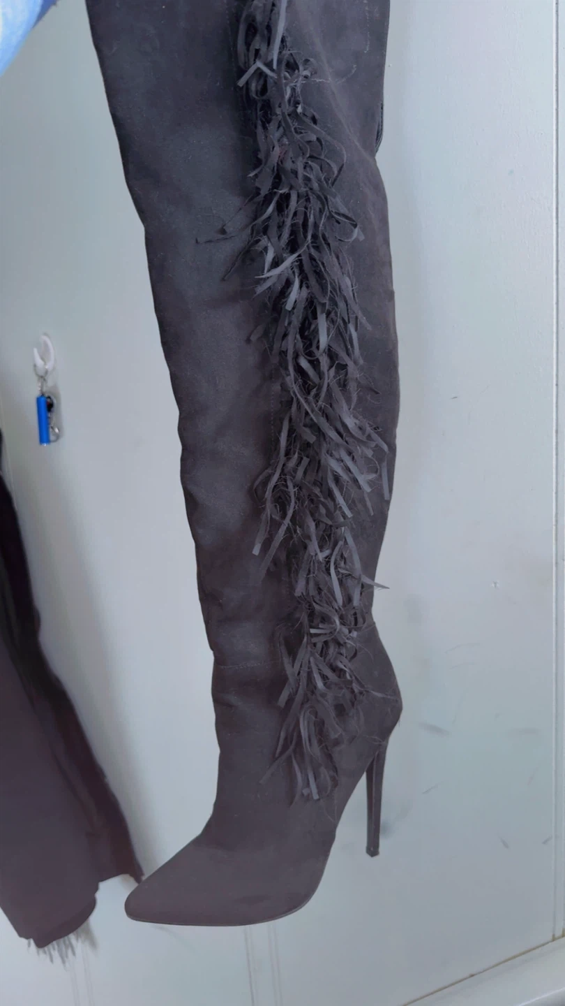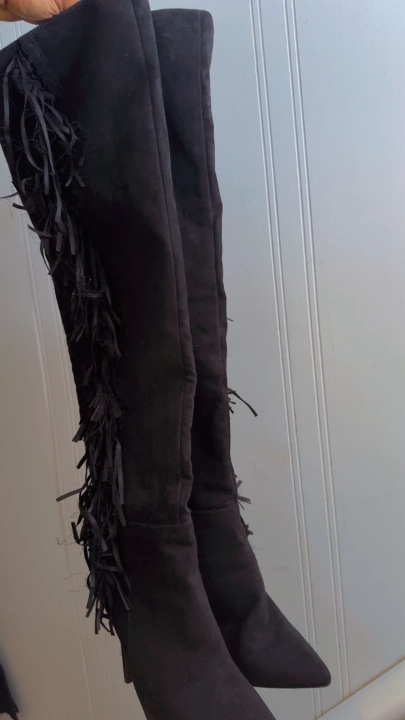 PRETTY GIRL Black Suede Fringe Over-the-Knee Boots US 8.5
