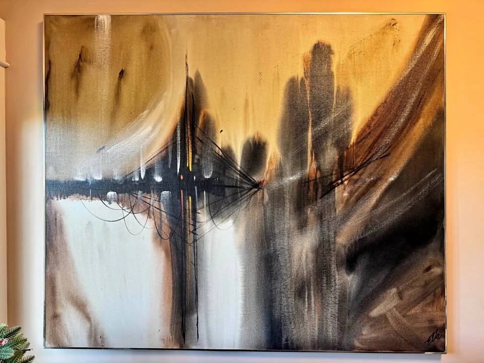 Large Modern Abstract Oil Painting – Neutral Tones