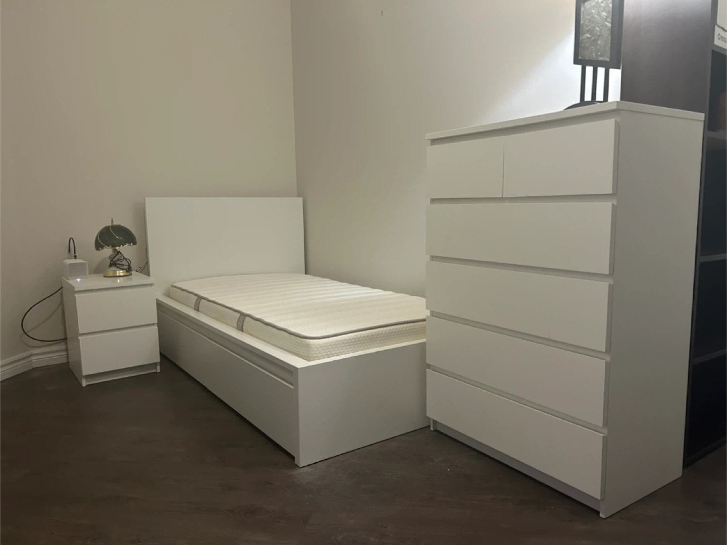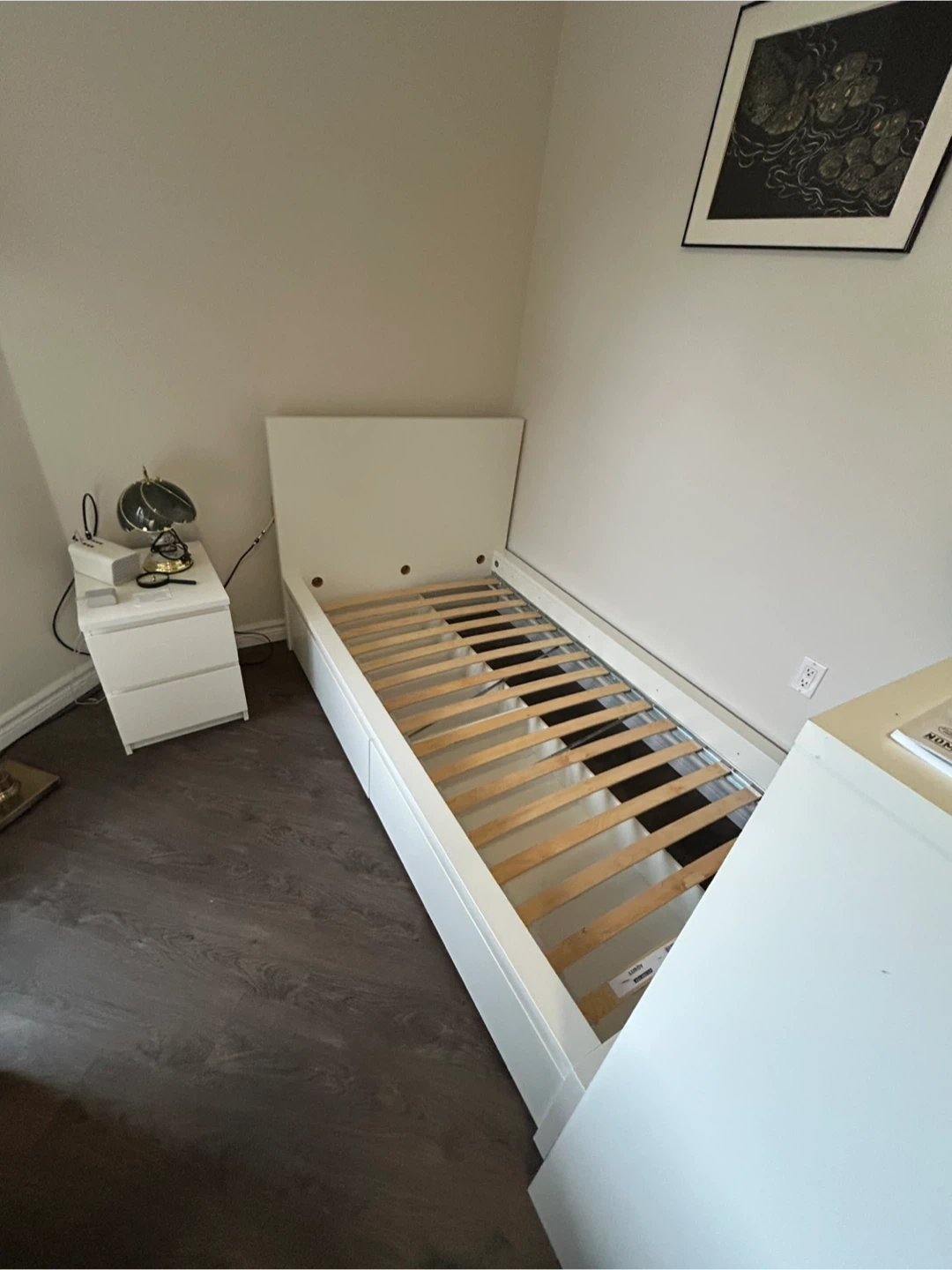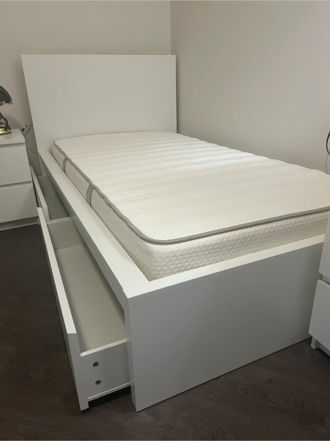 IKEA White Twin Bed Frame with Storage Drawers and Mattress