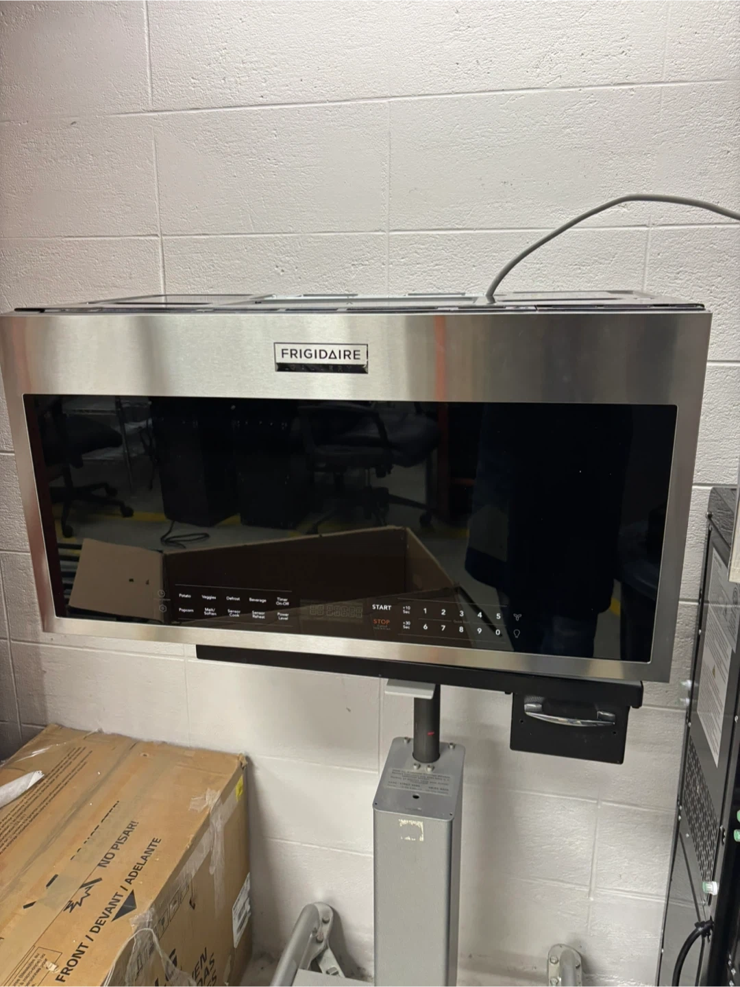 This is a Frigidaire over-the-range microwave oven, model GMOS1964AF. It's stainless steel with an easy-care surface. Includes original box and components.