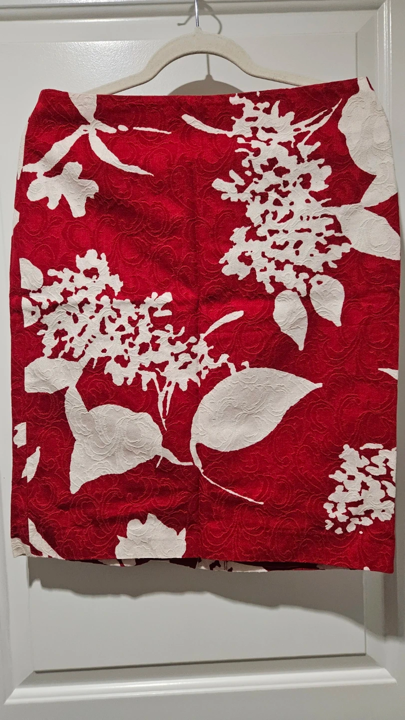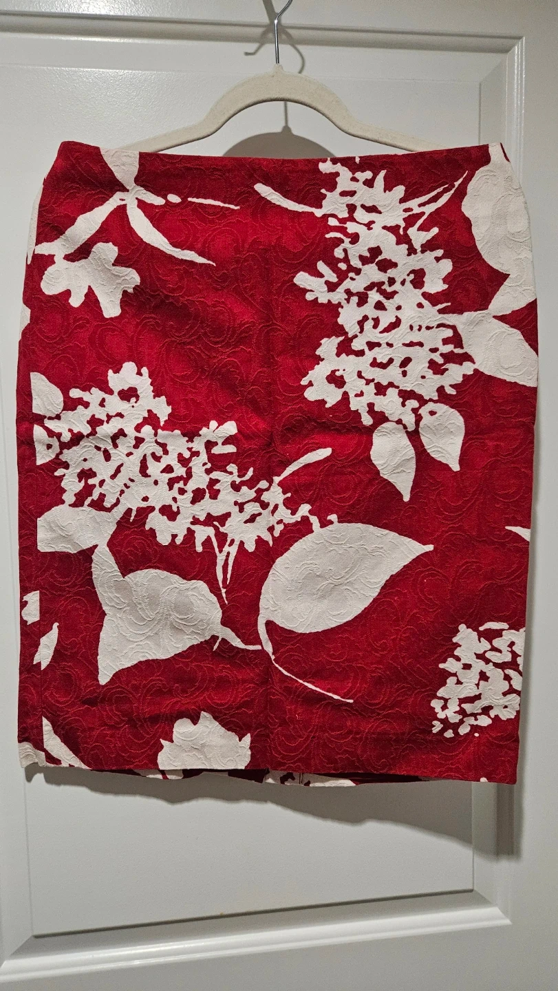 Talbots Women's Red Floral Print Pencil Skirt, Size 6