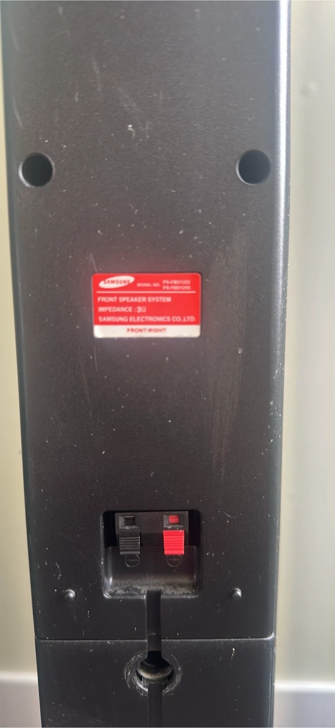 Selling a set of 4 Samsung tower speakers. The model number is PS-FR6012W. These speakers are in good condition and ready to enhance your home theatre experience!