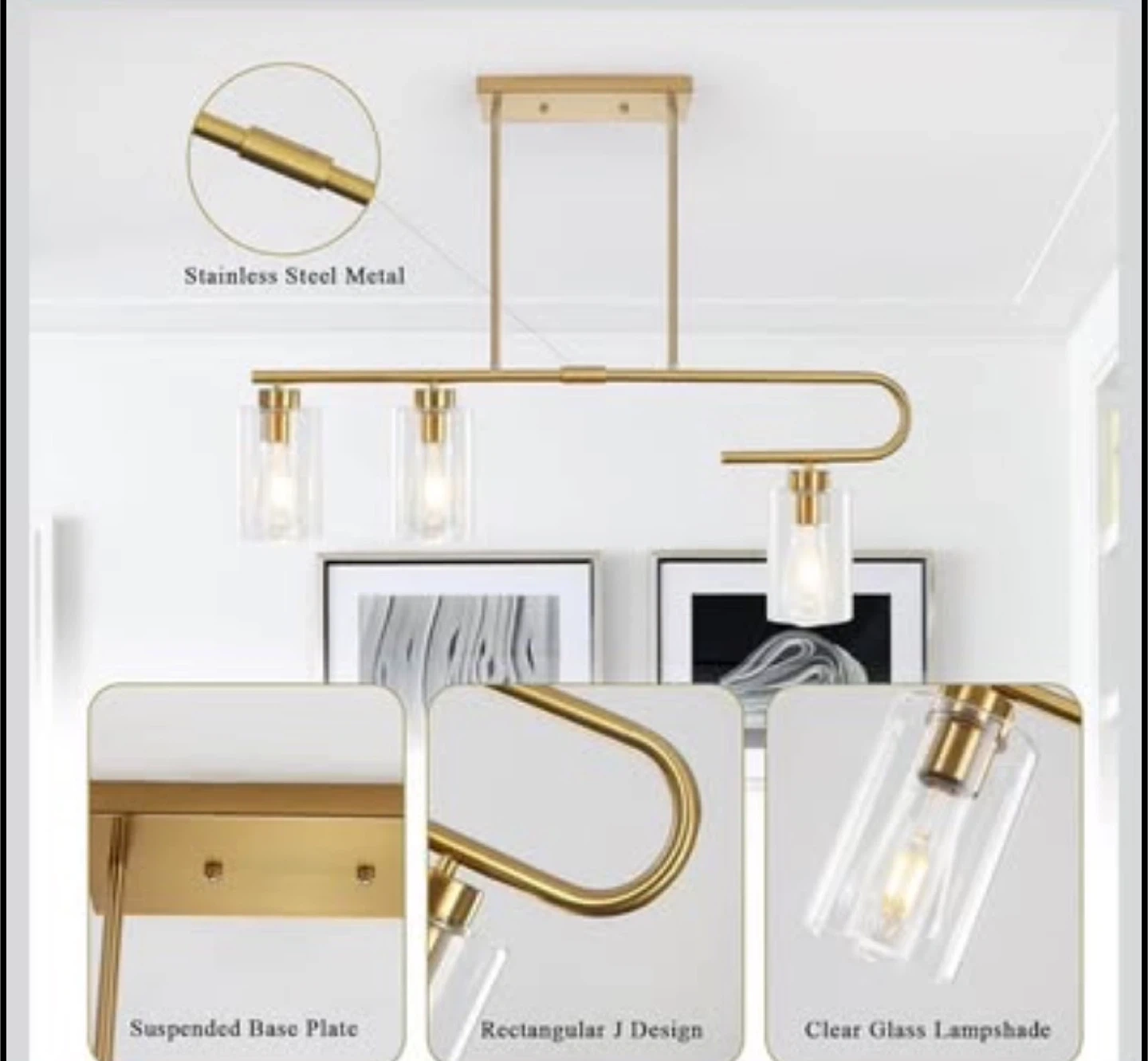 Island Light for Kitchen Gold Dining Room Light Fixture Over Table 3-Light Modern Chandelier Pendant Lighting for Dining Table Entryway Island Living Room