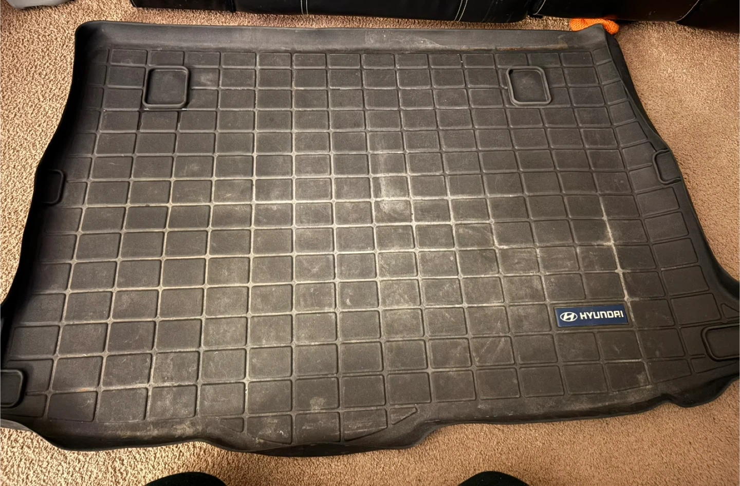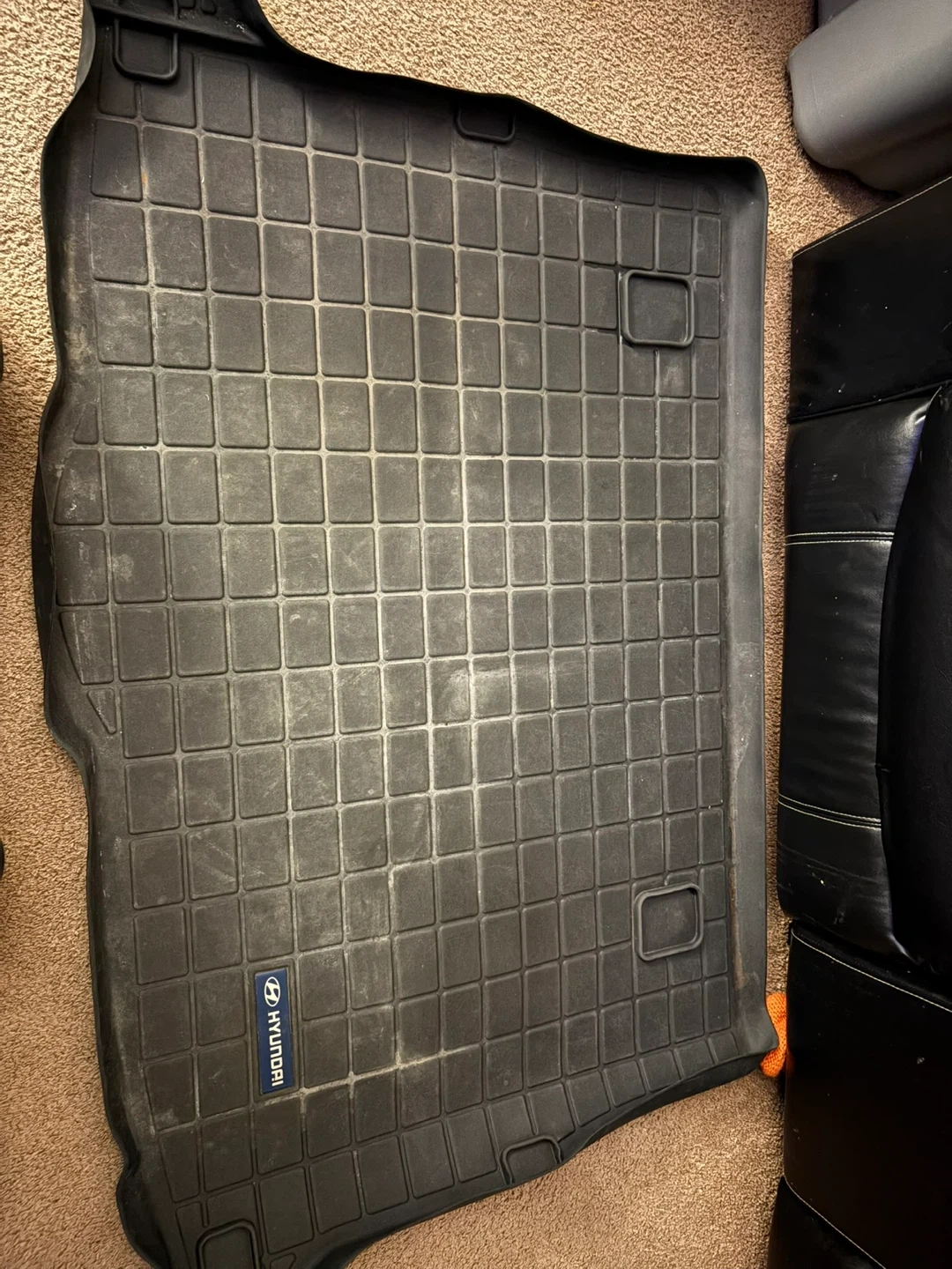 This is a OEM Hyundai veloster trunk mat had it in my 2012 cargo liner mat. It's made of durable rubber material. This mat helps protect your vehicle's trunk from spills and dirt. Asking $100 or best offers