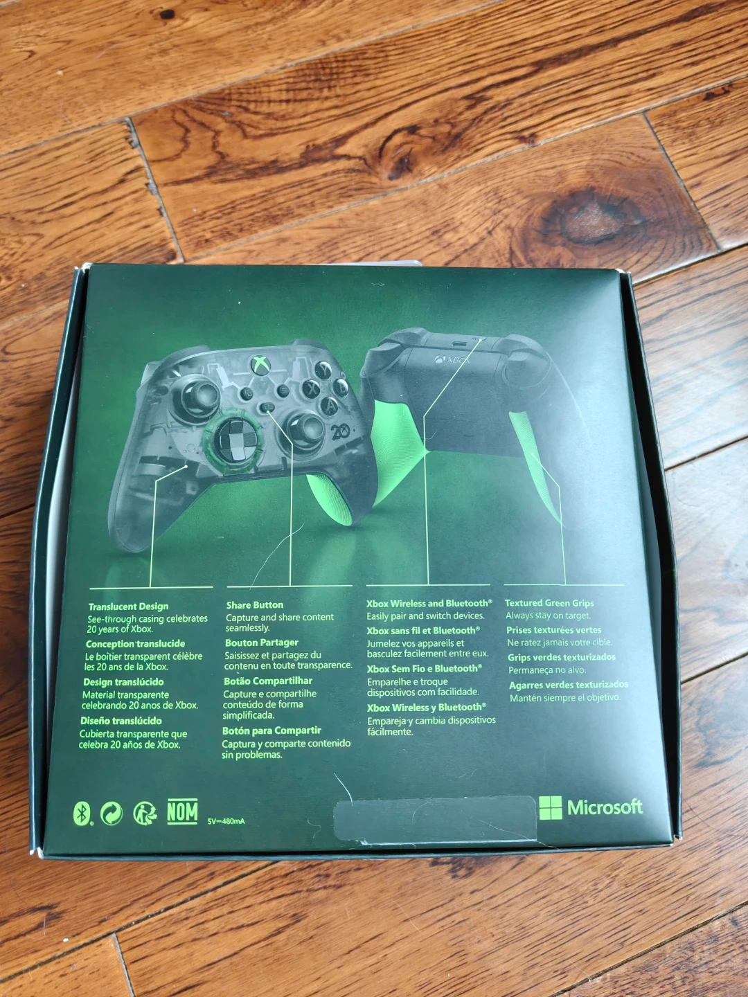 Celebrate 20 years of Xbox with this special edition Xbox series X, S wireless controller. It features a transparent design and green accents, plus textured grips for better handling. This controller is compatible with Xbox Wireless and Bluetooth.