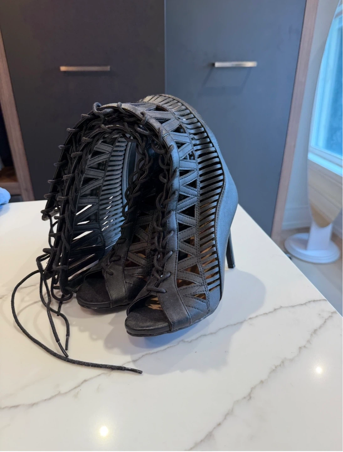 Size 7 Black Lace-Up Peep-Toe Heeled Boots