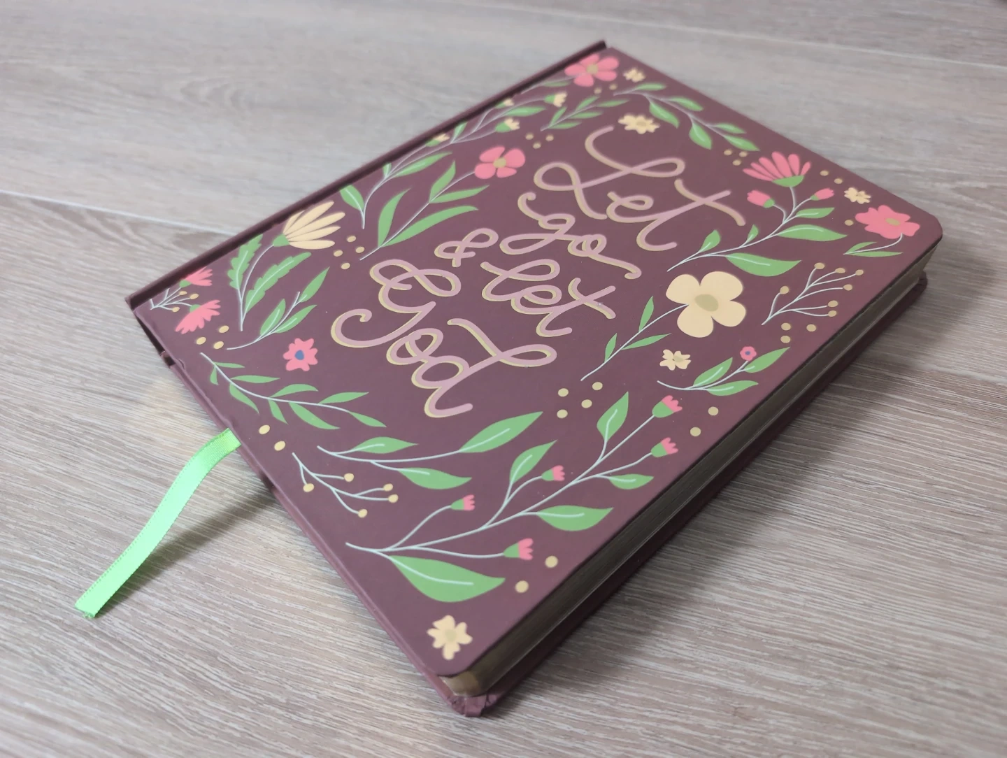 This journal features a beautiful floral design with the inspirational phrase 'Let Go & Let God' on the cover. It includes a ribbon bookmark. Perfect for daily reflections and prayer journaling!